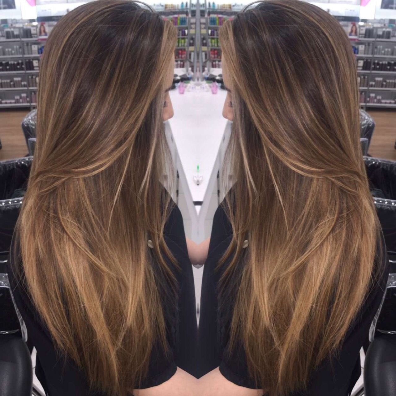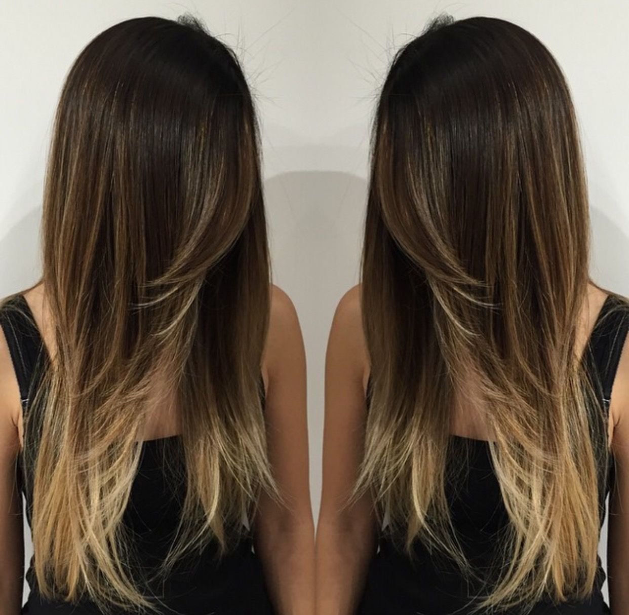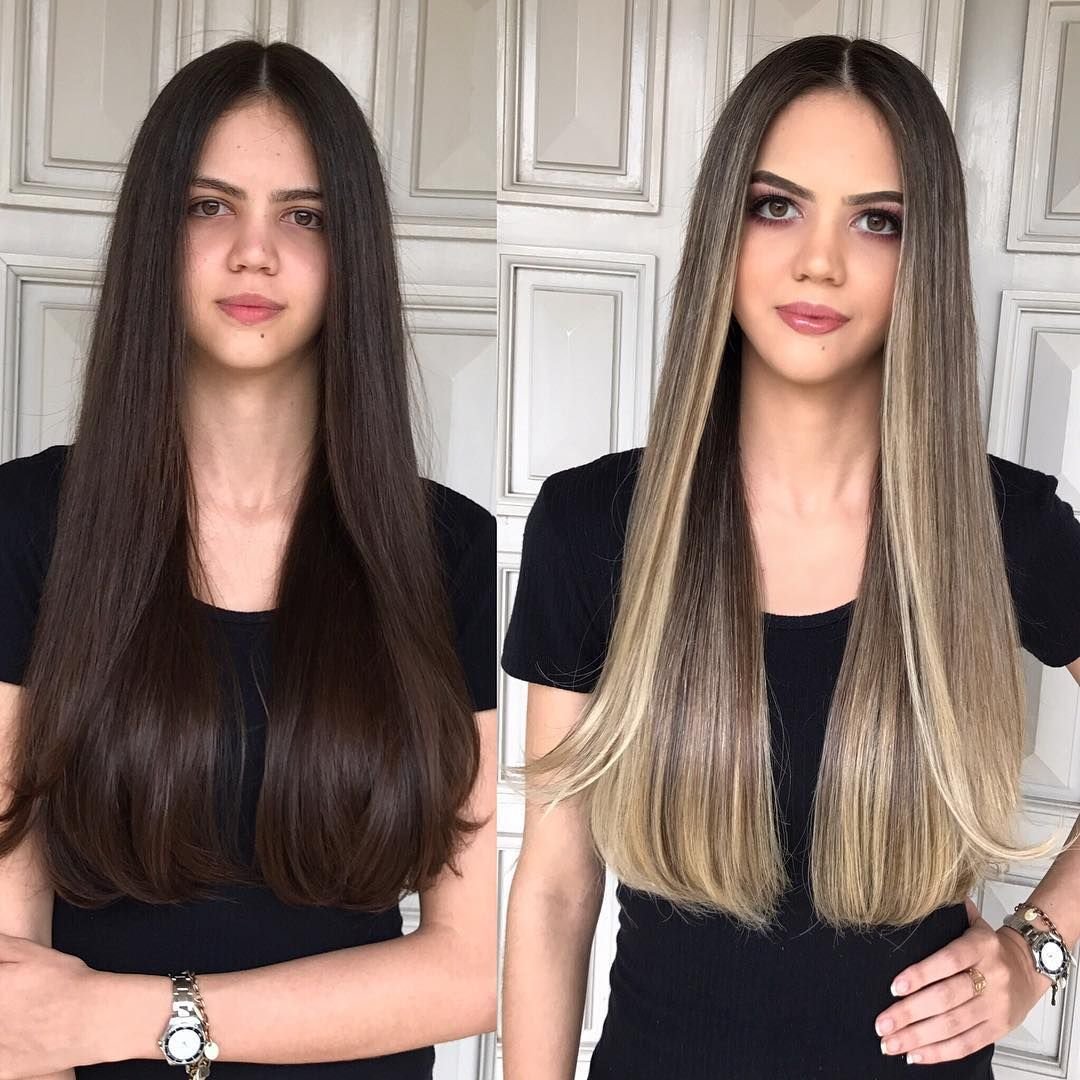 Балаяж на тёмные волосы длинные прямые волосы