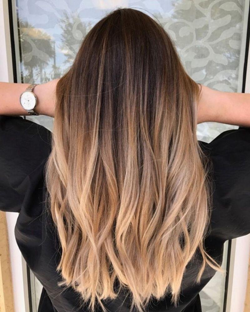 Балаяж на темные волосы длинные прямые