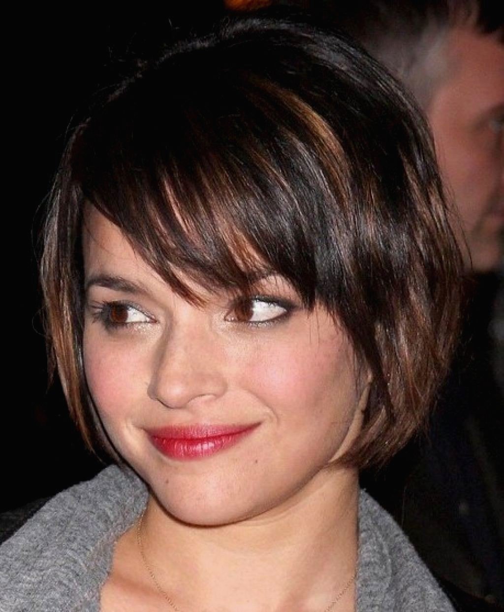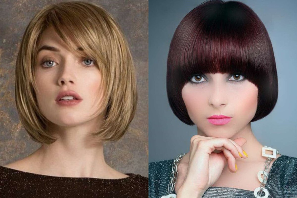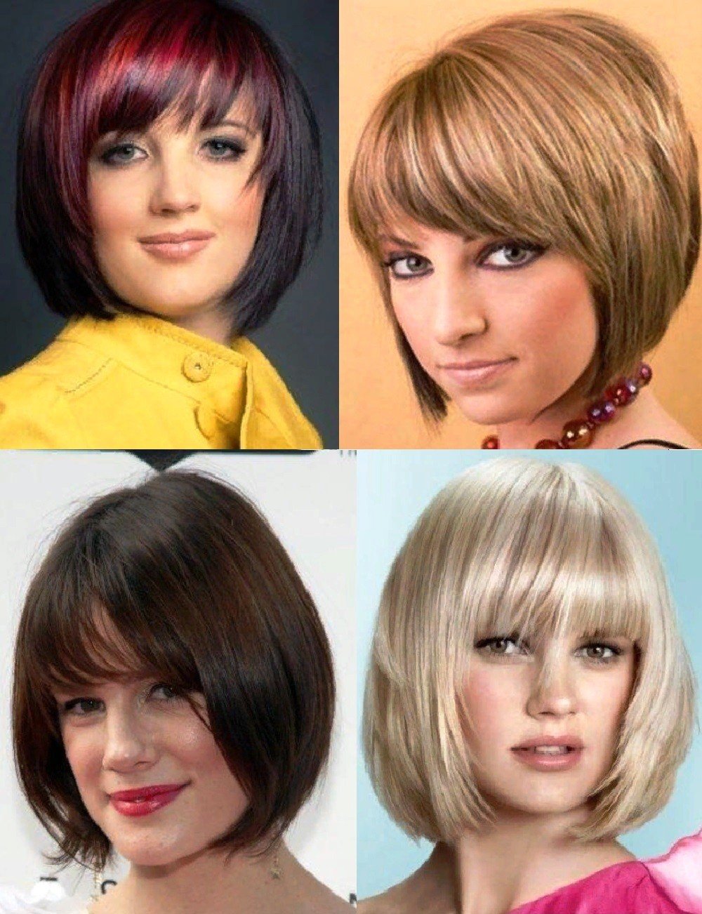 Каре стрижка с челкой на средние с челкой для круглого лица