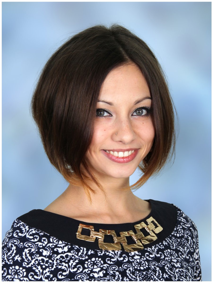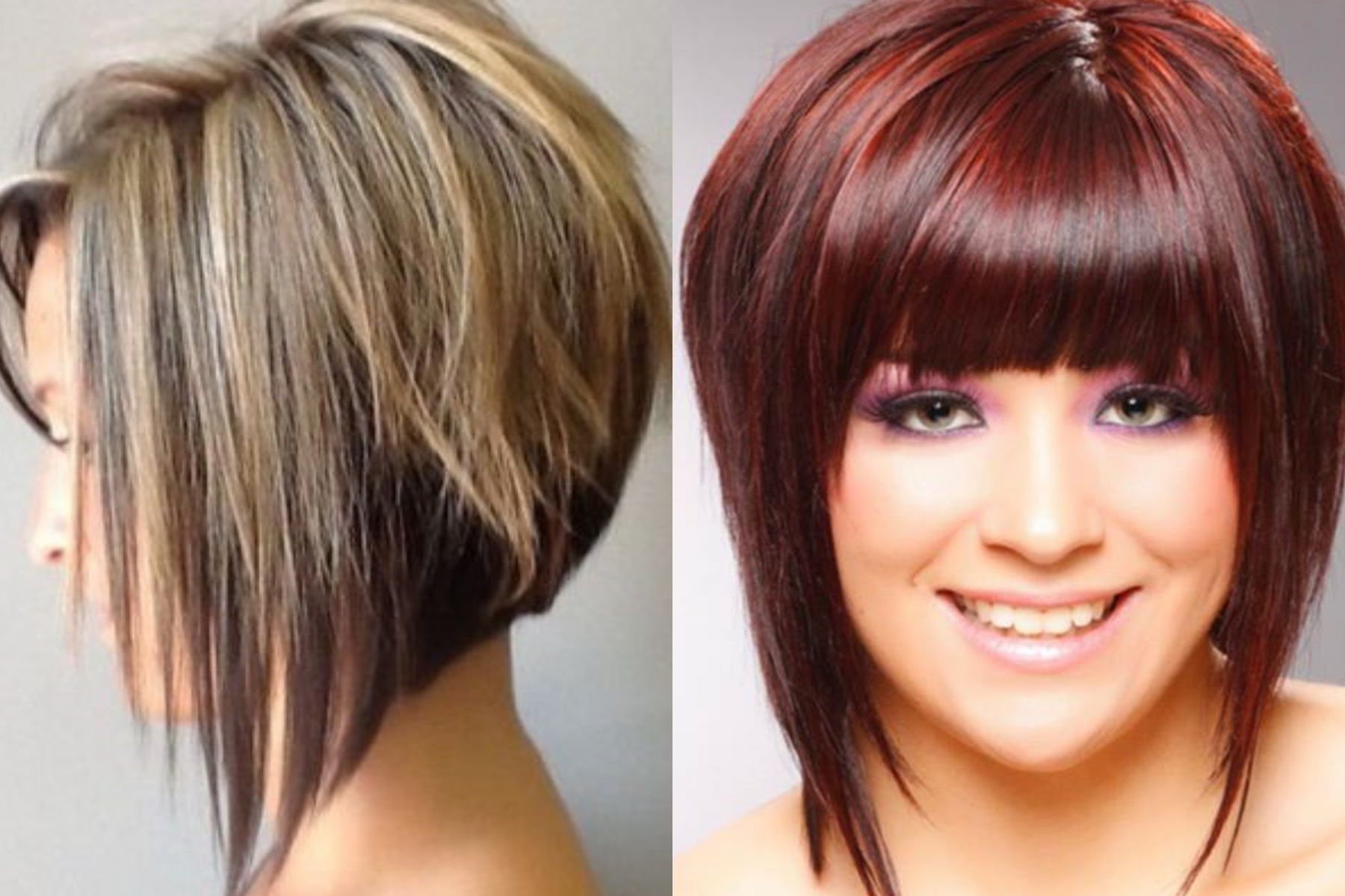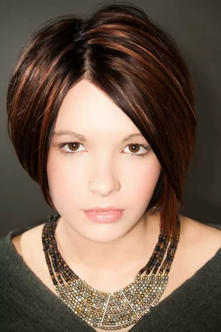 Причёски Каскад каре на ножке с чёлкой для круглого лица