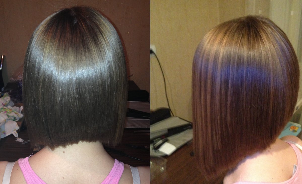 Кератиновое выпрямление волос на каре