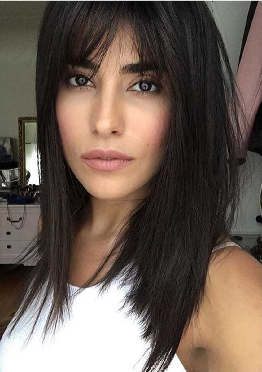 Девушки брюнетки с челкой