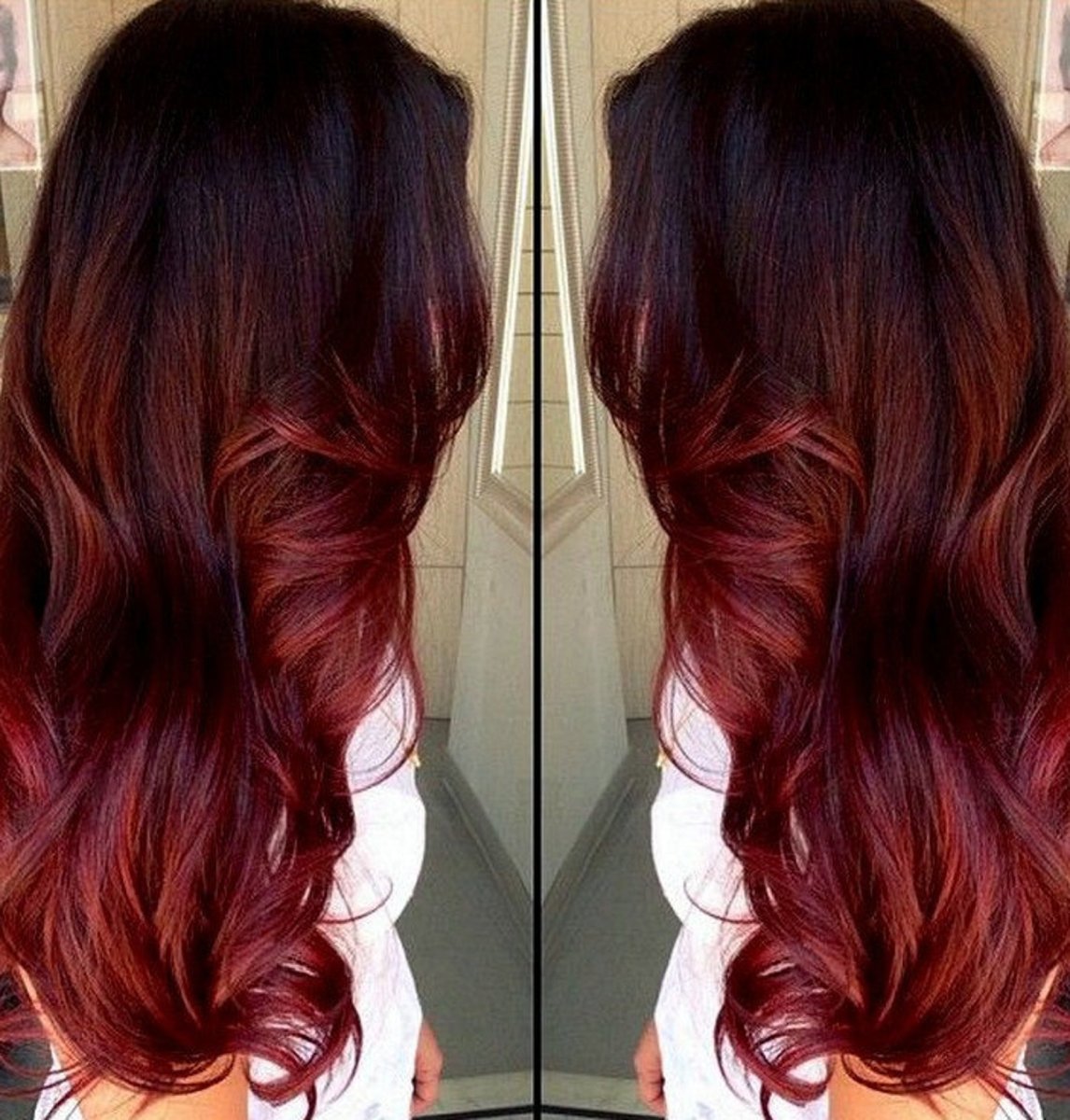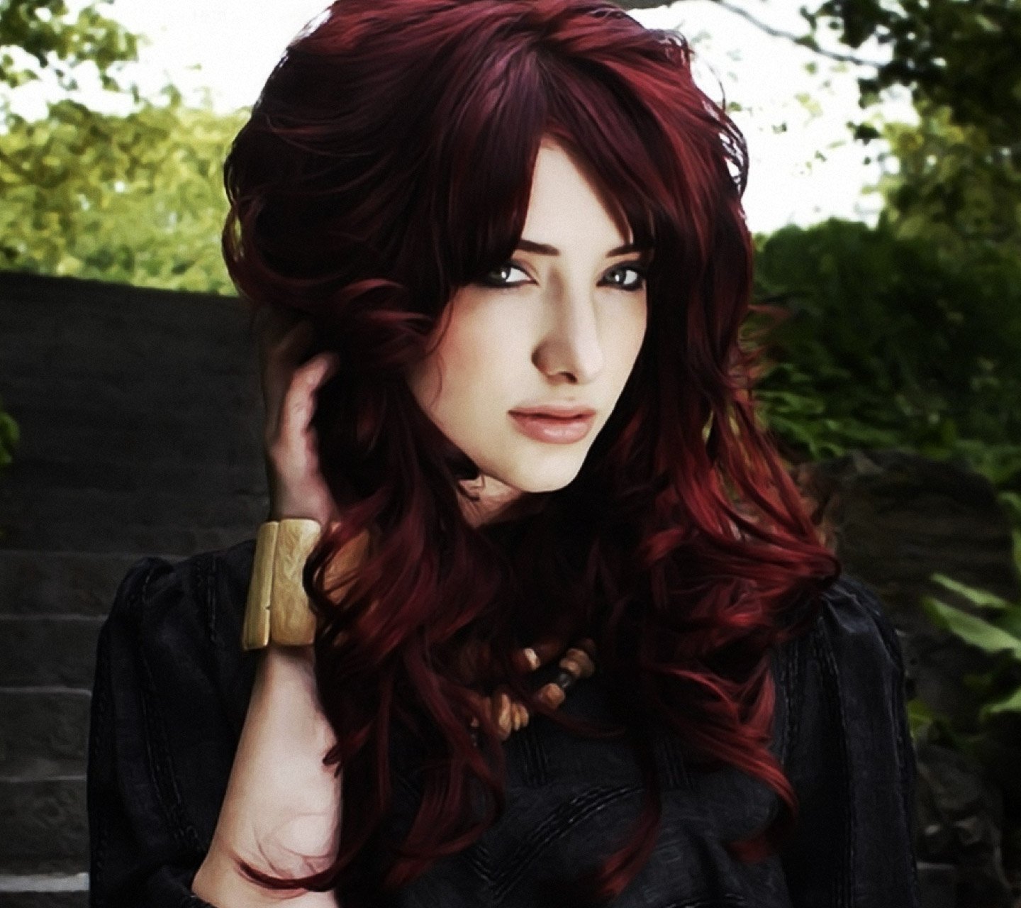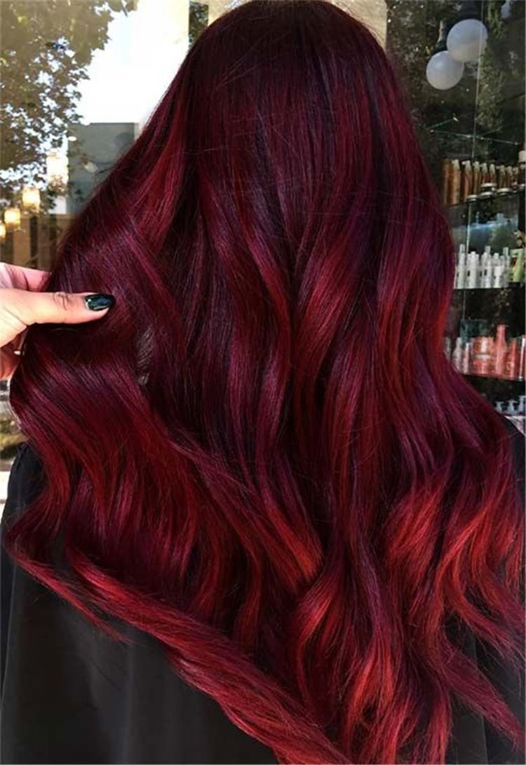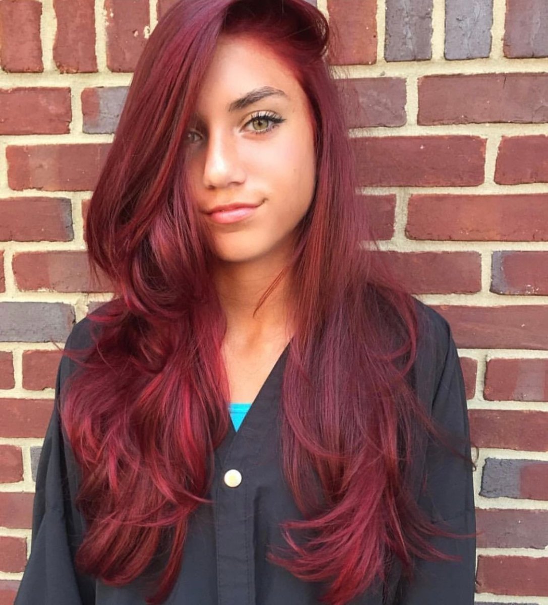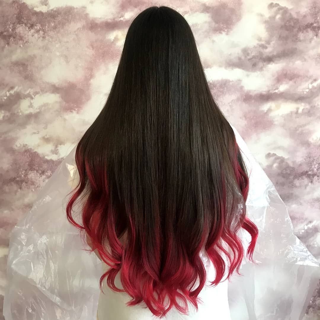 Гранатовый цвет волос на темные волосы
