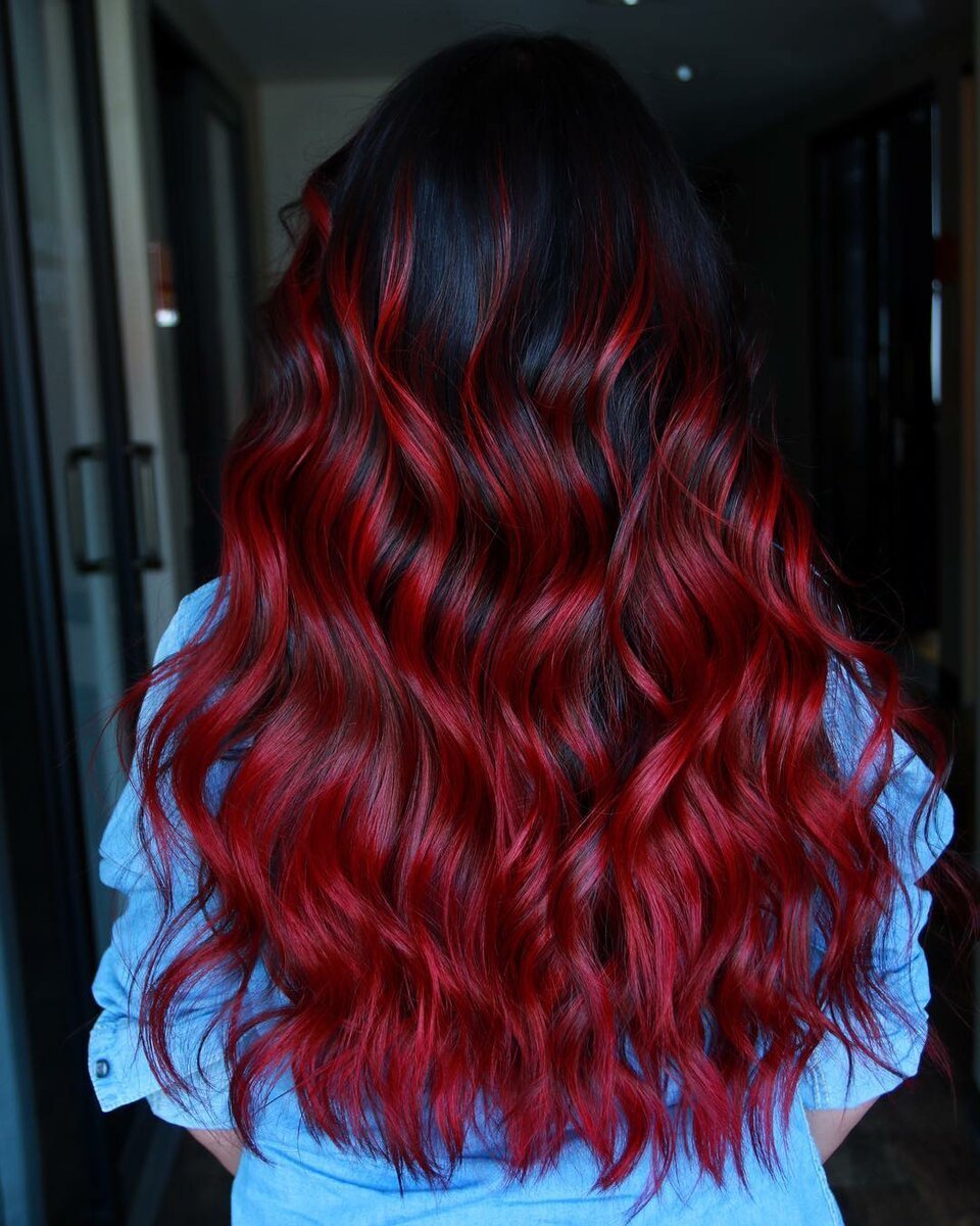 Балаяж красный на темные
