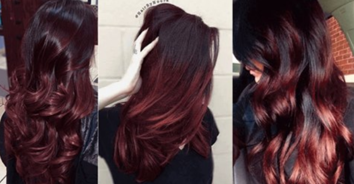 Омбре бордо на темные волосы