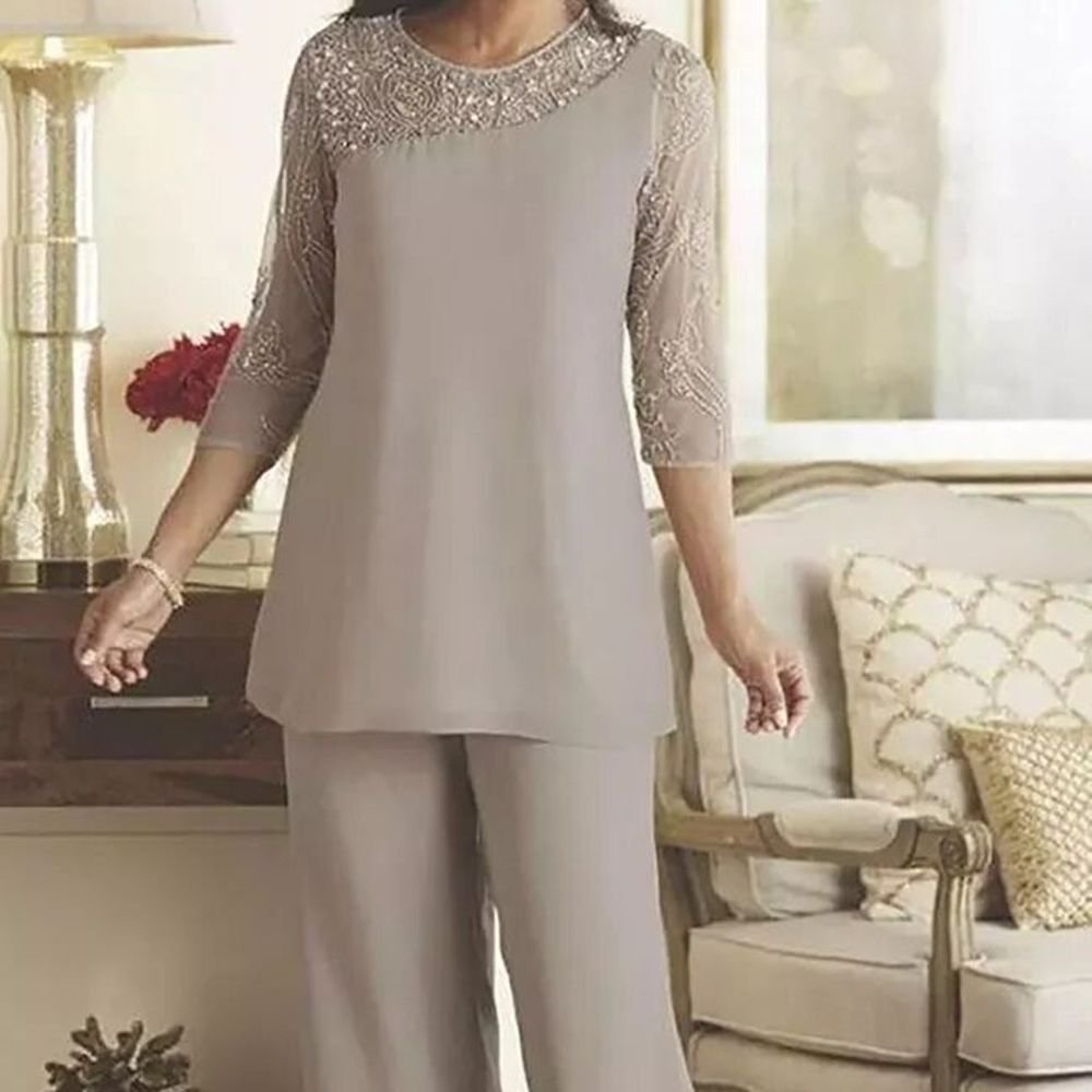 Брючный костюм на свадьбу для мамы жениха