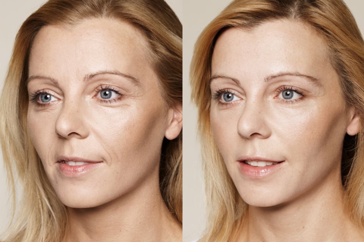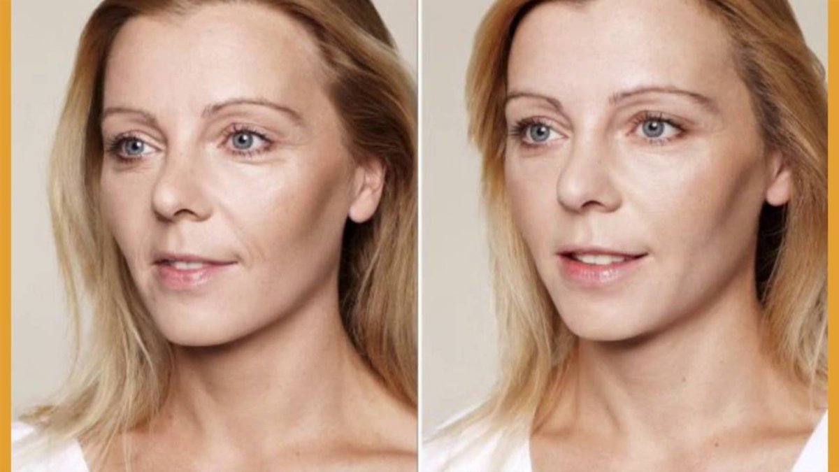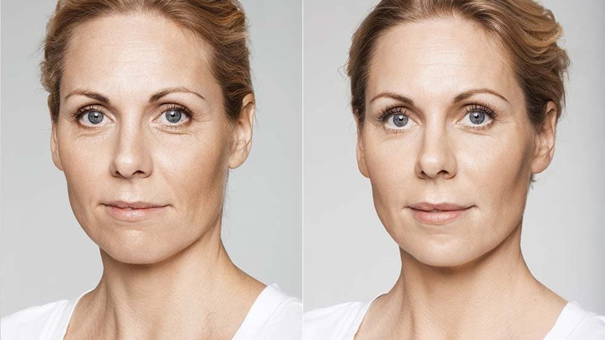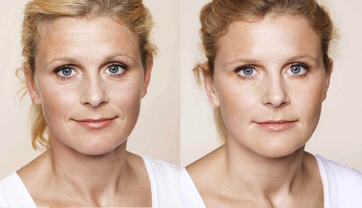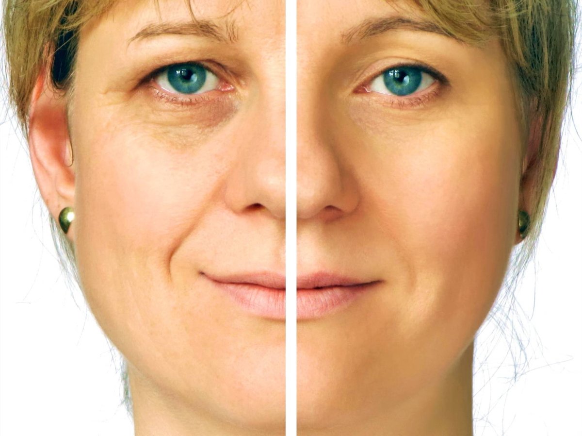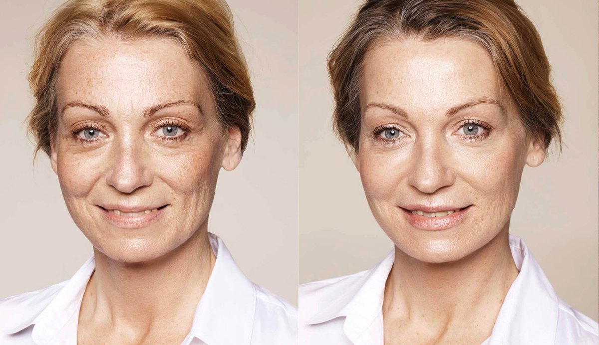 Лицо с морщинами до и после