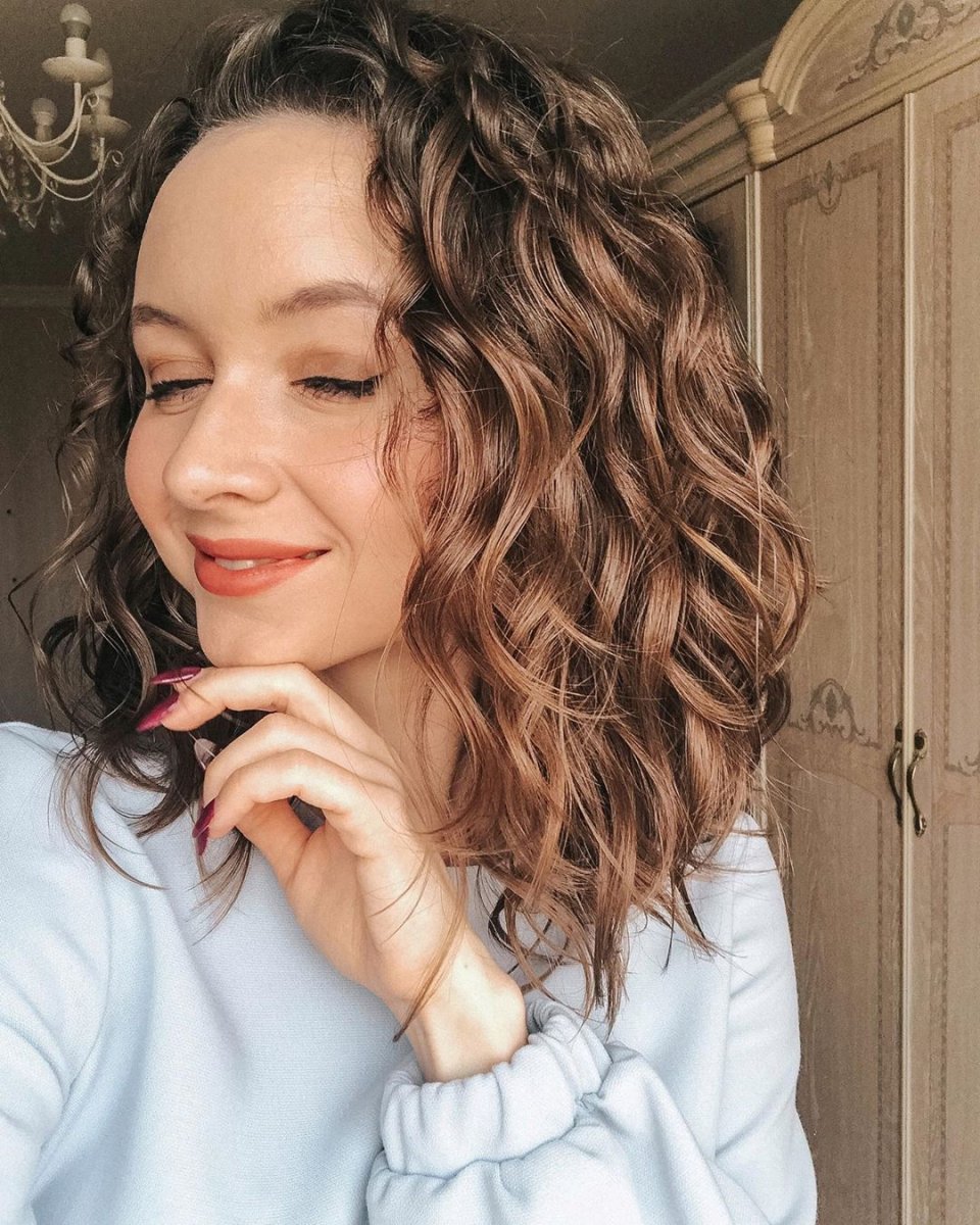Волнистые кудри на средние волосы