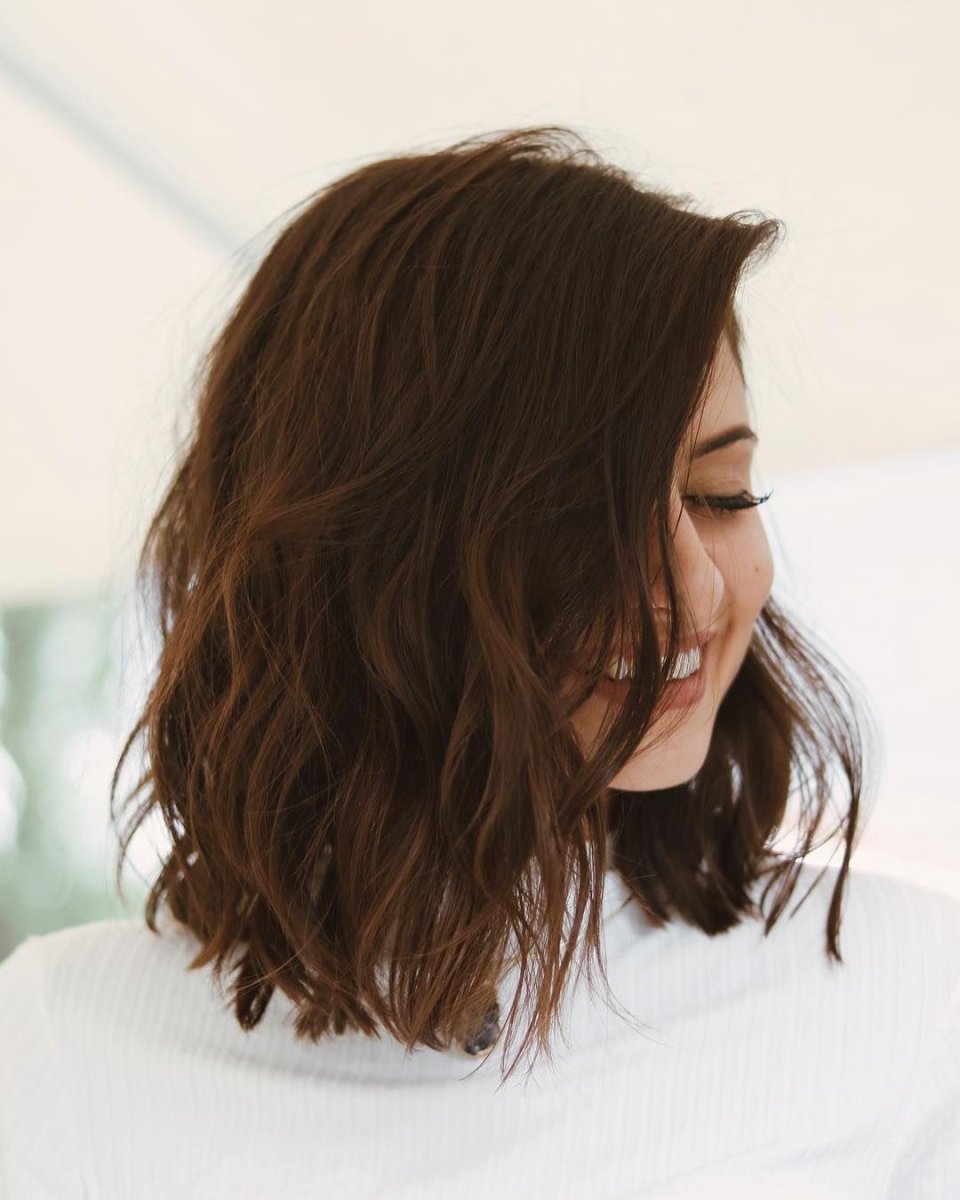 Градуированное каре на средние волосы волнистые волосы