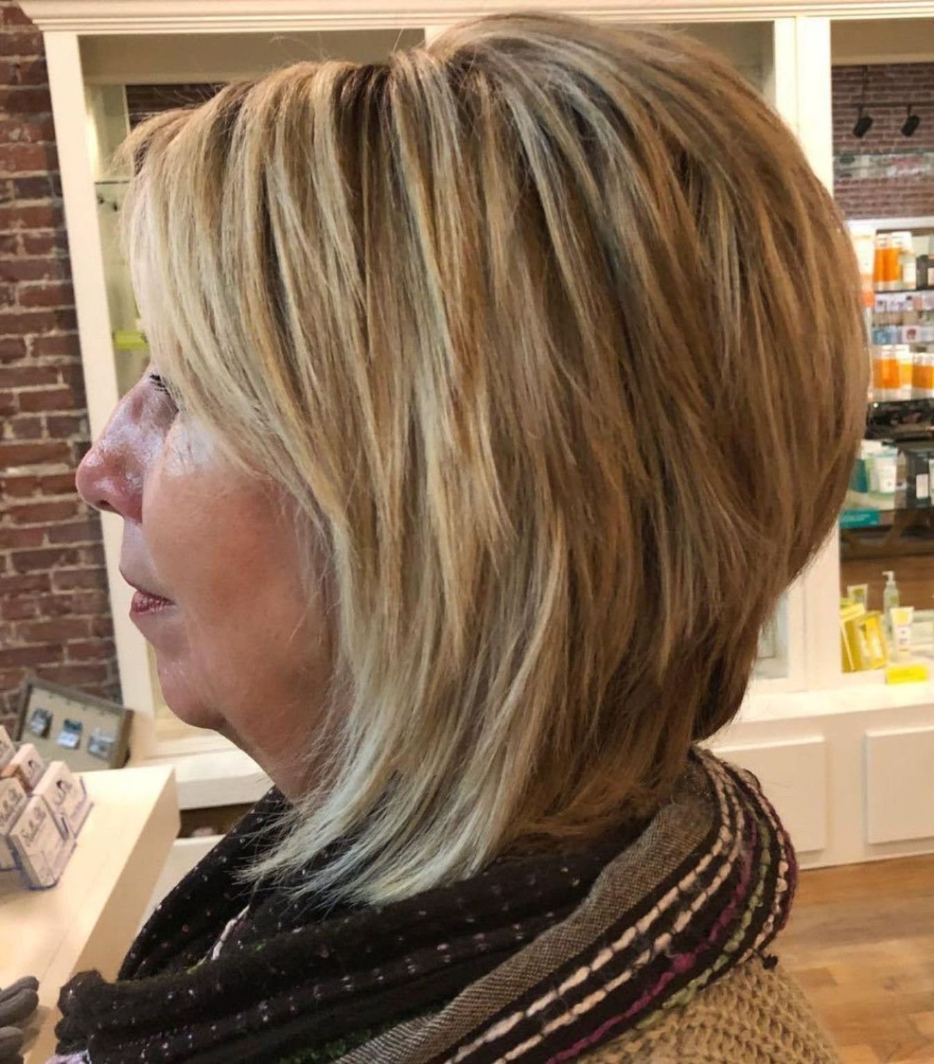 Стрижка Каскад Боб на средние волосы для женщины 50