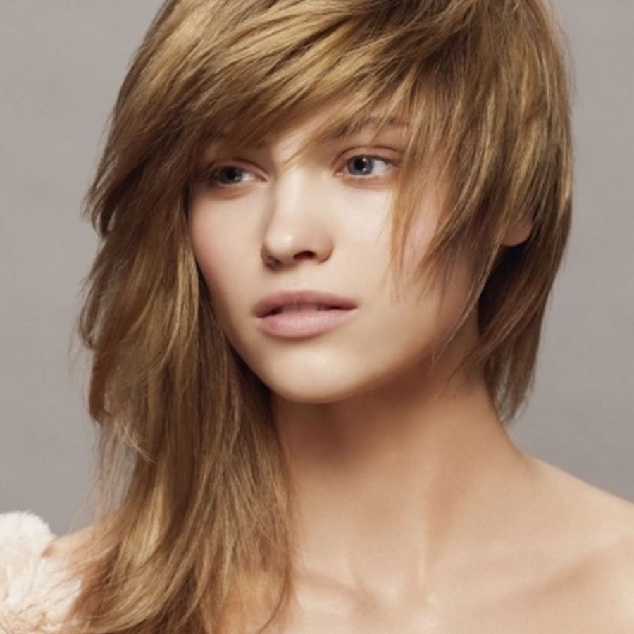 Стрижки Каскад на средние волосы с челкой асимметрия