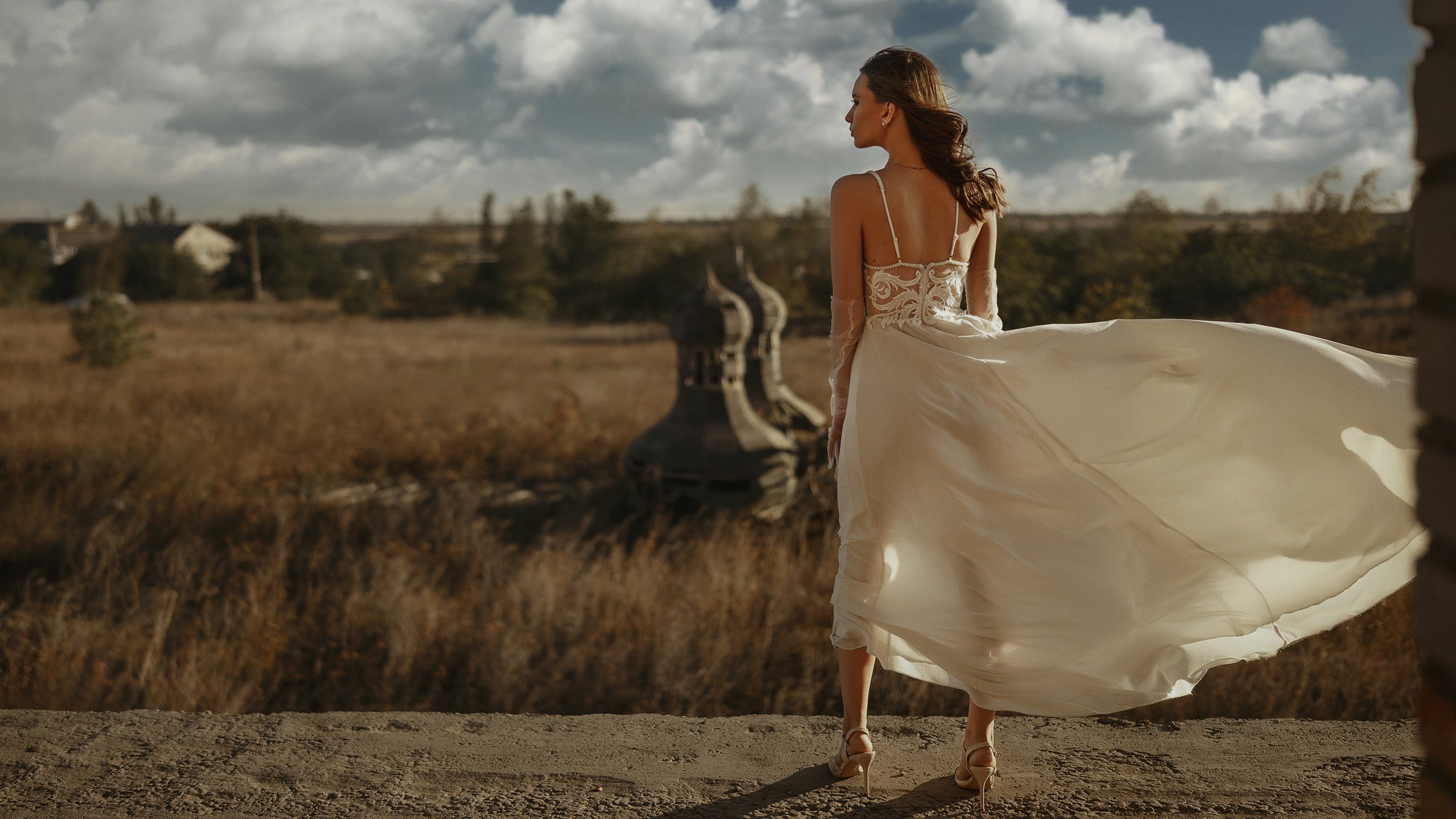 Девушка в белом платье свадебном