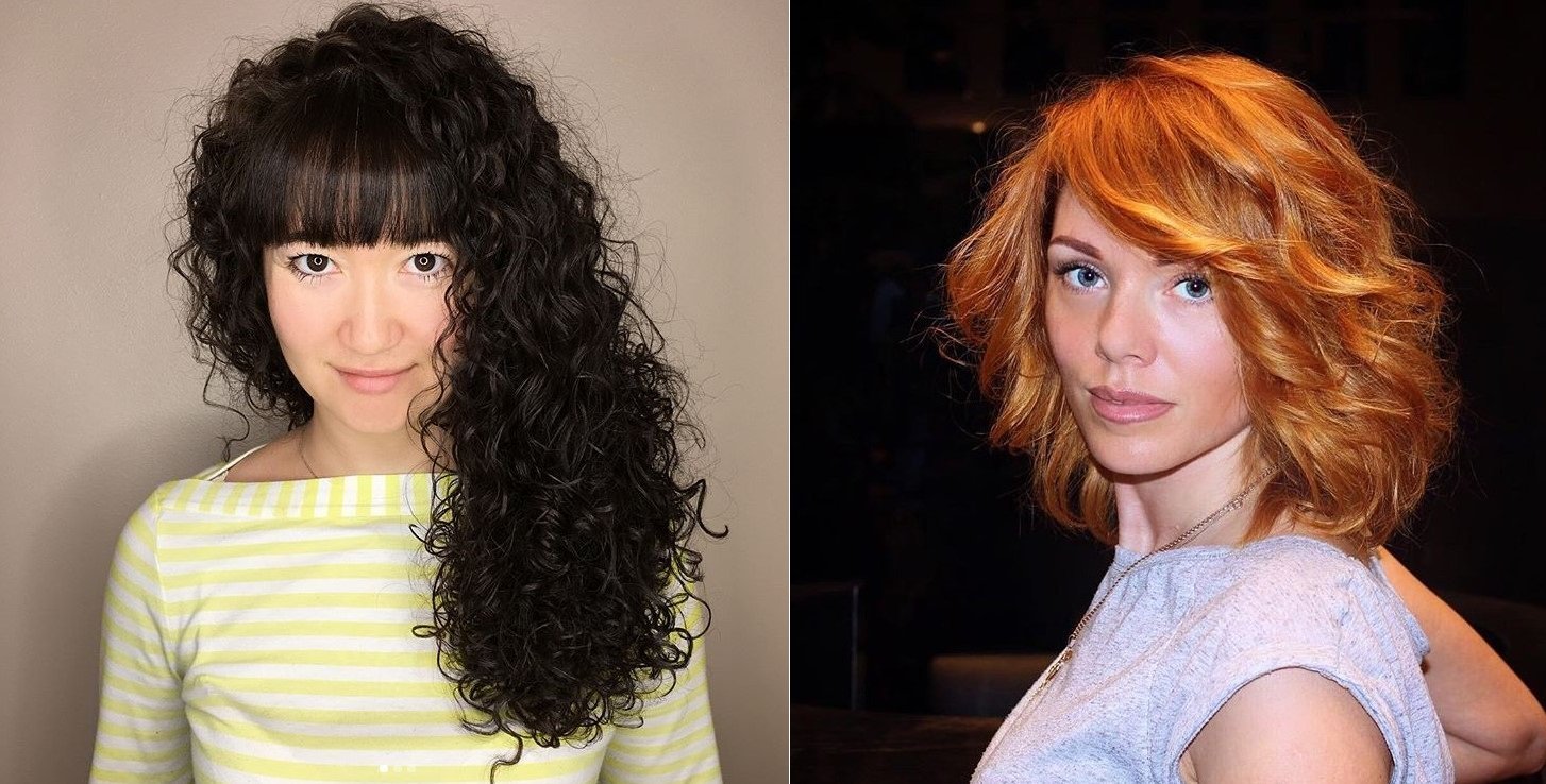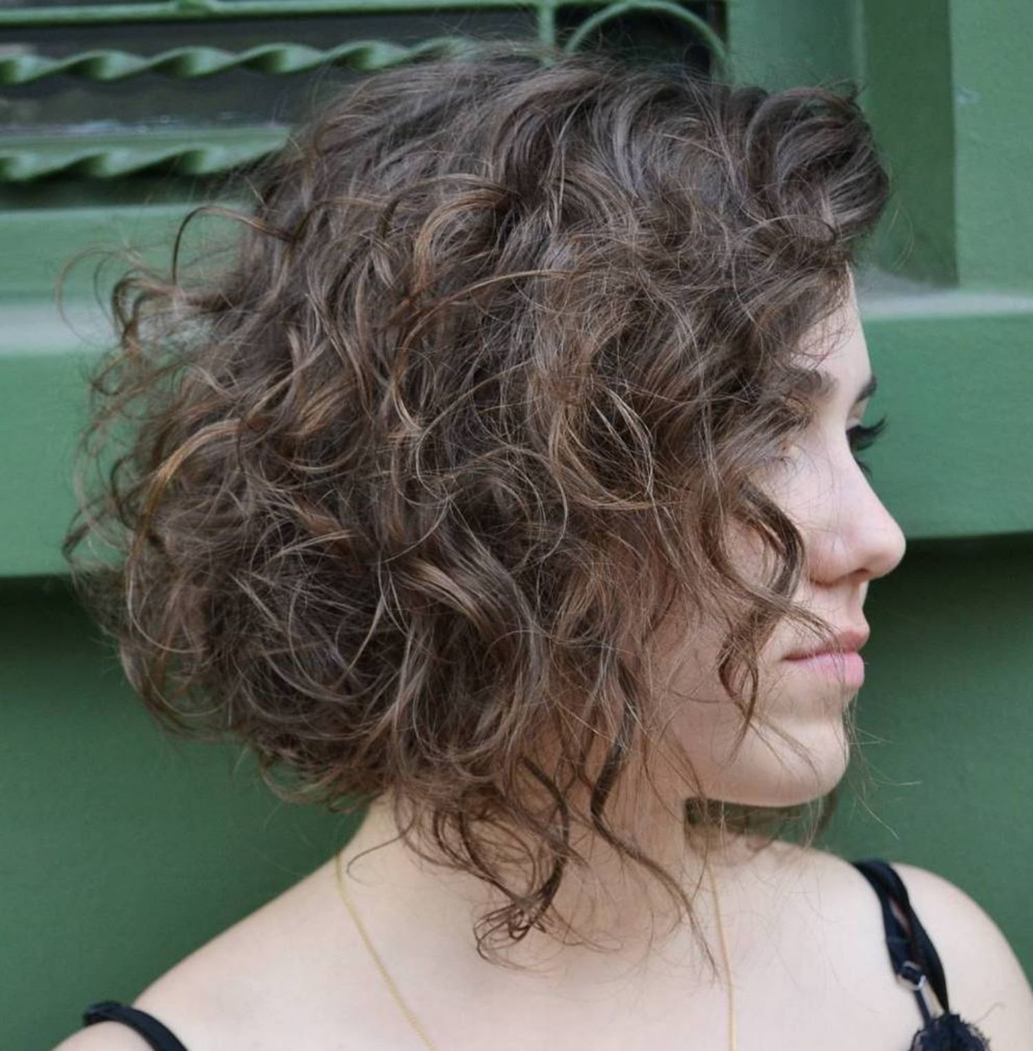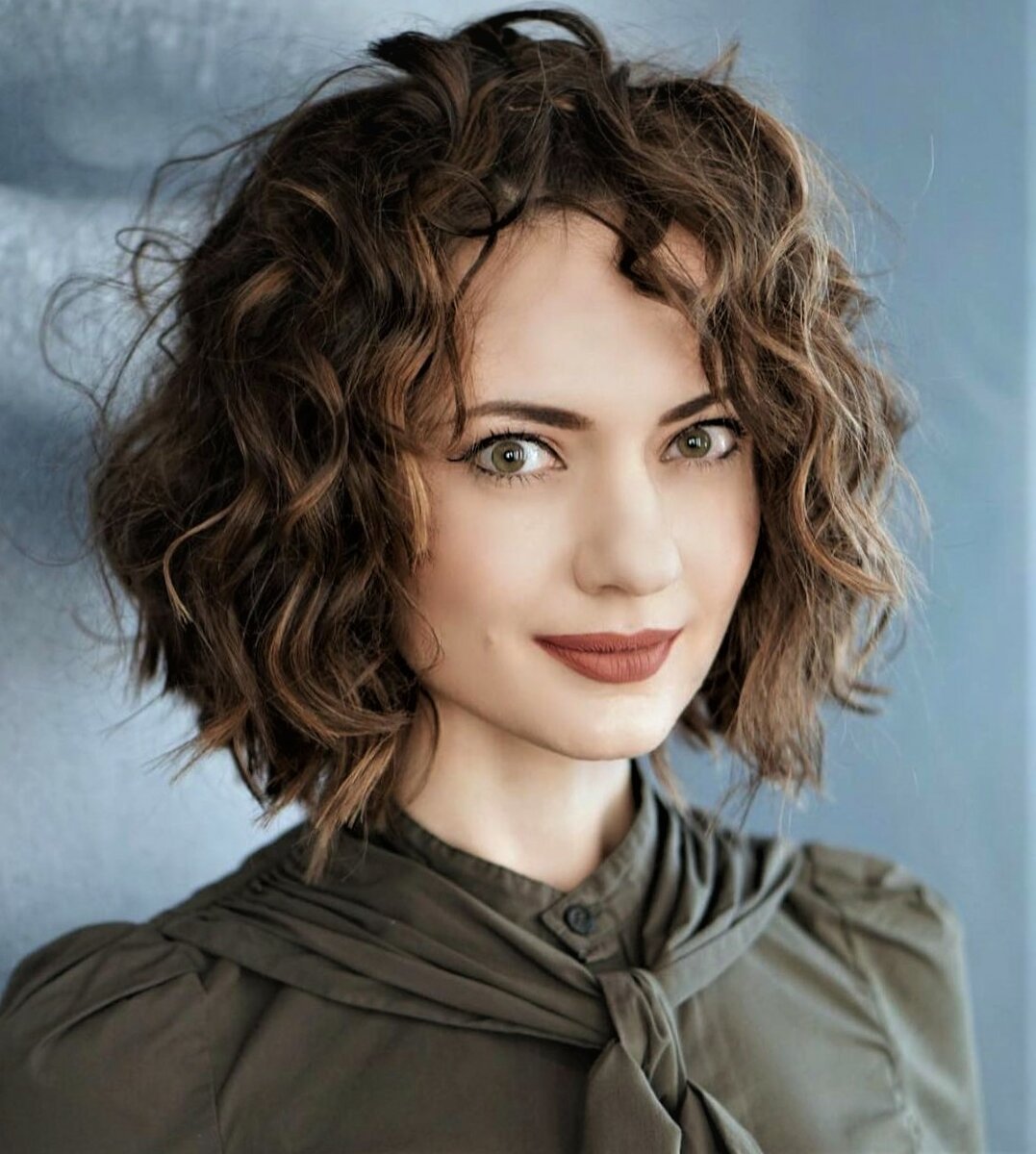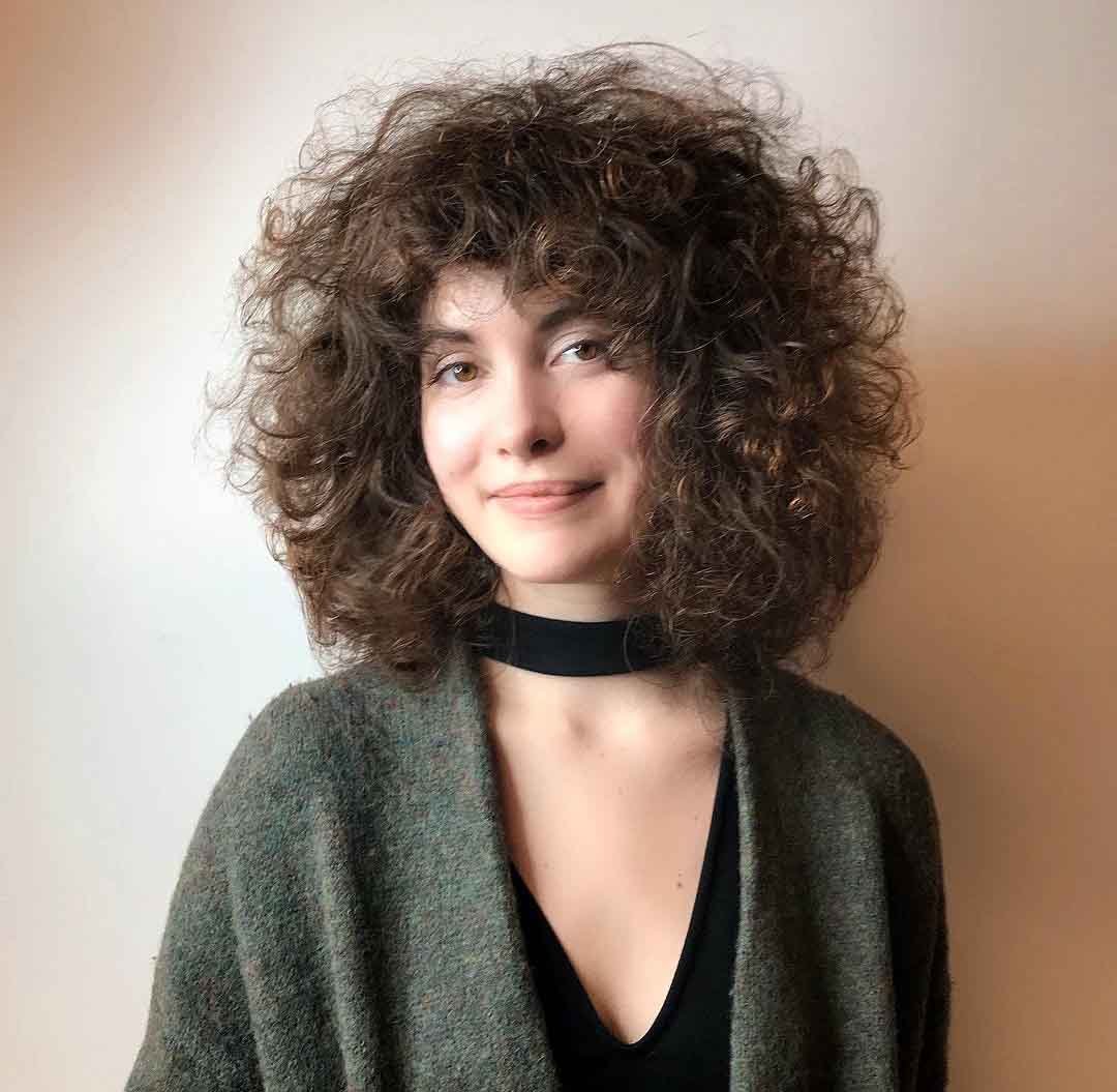 Градуированный Боб на средние вьющиеся волосы с челкой