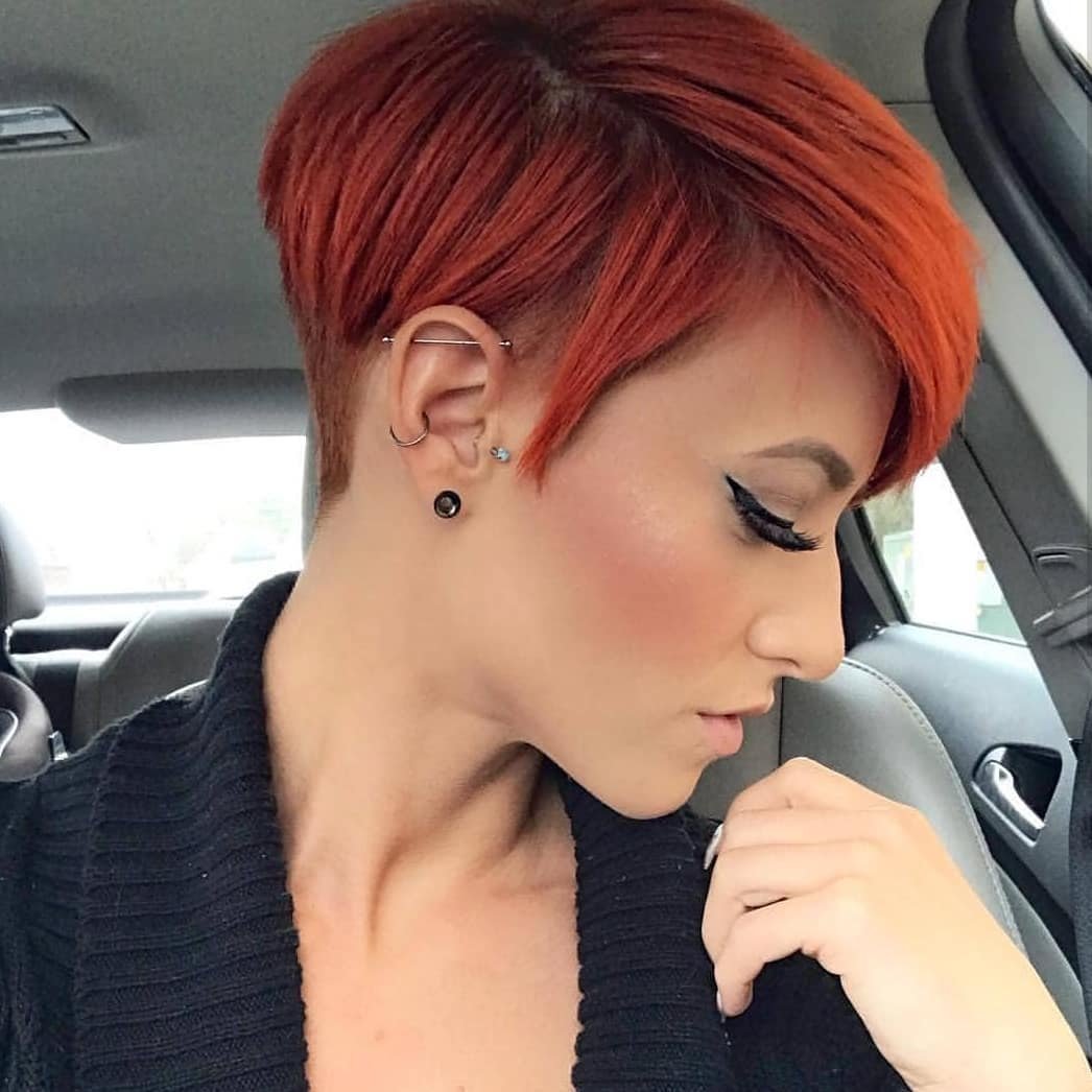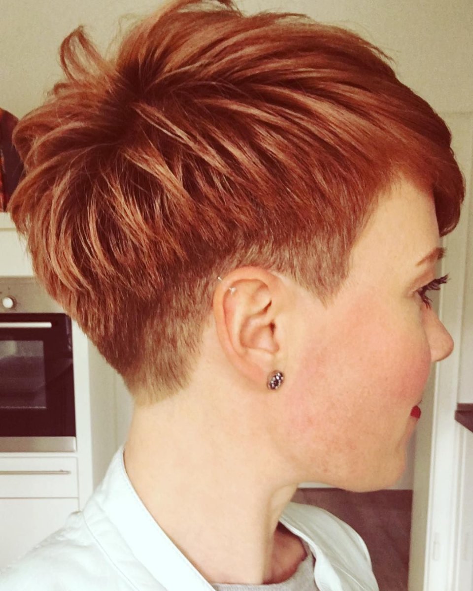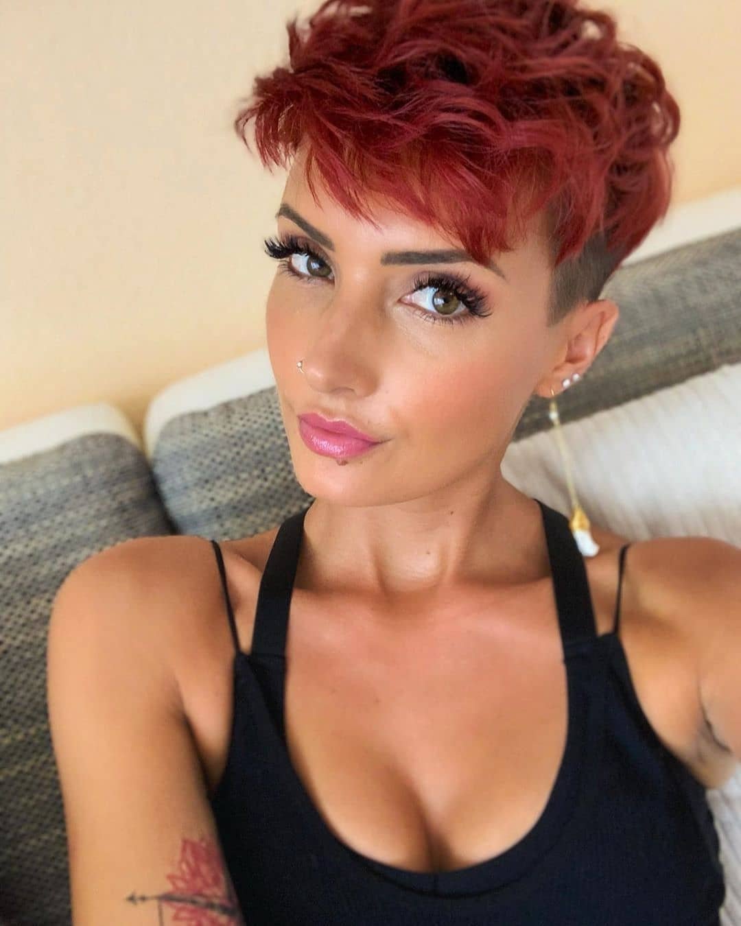 Короткие стрижки на рыжие волосы с выбритым затылком