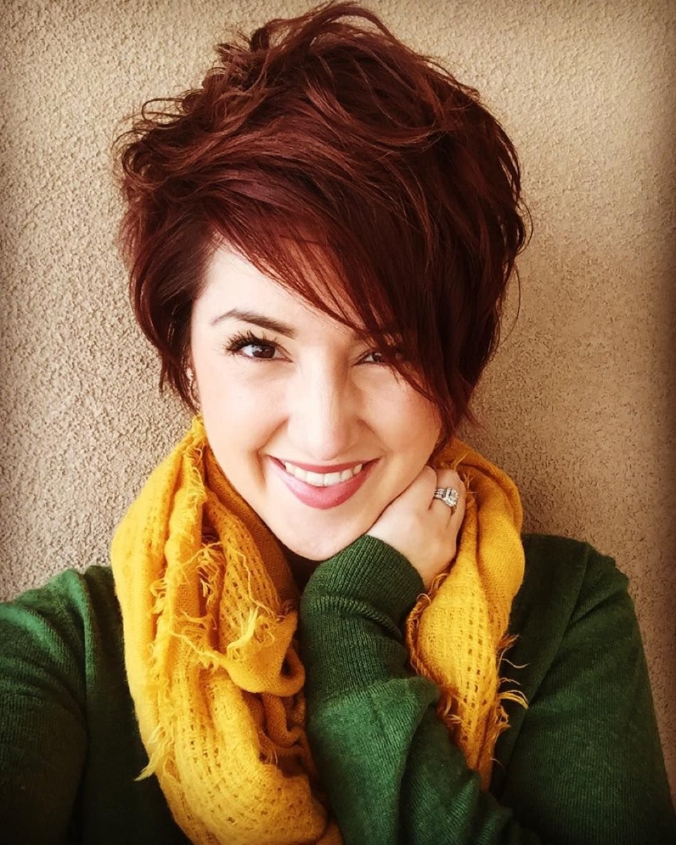 Мелирование на стрижку Пикси на рыжеватые волосы