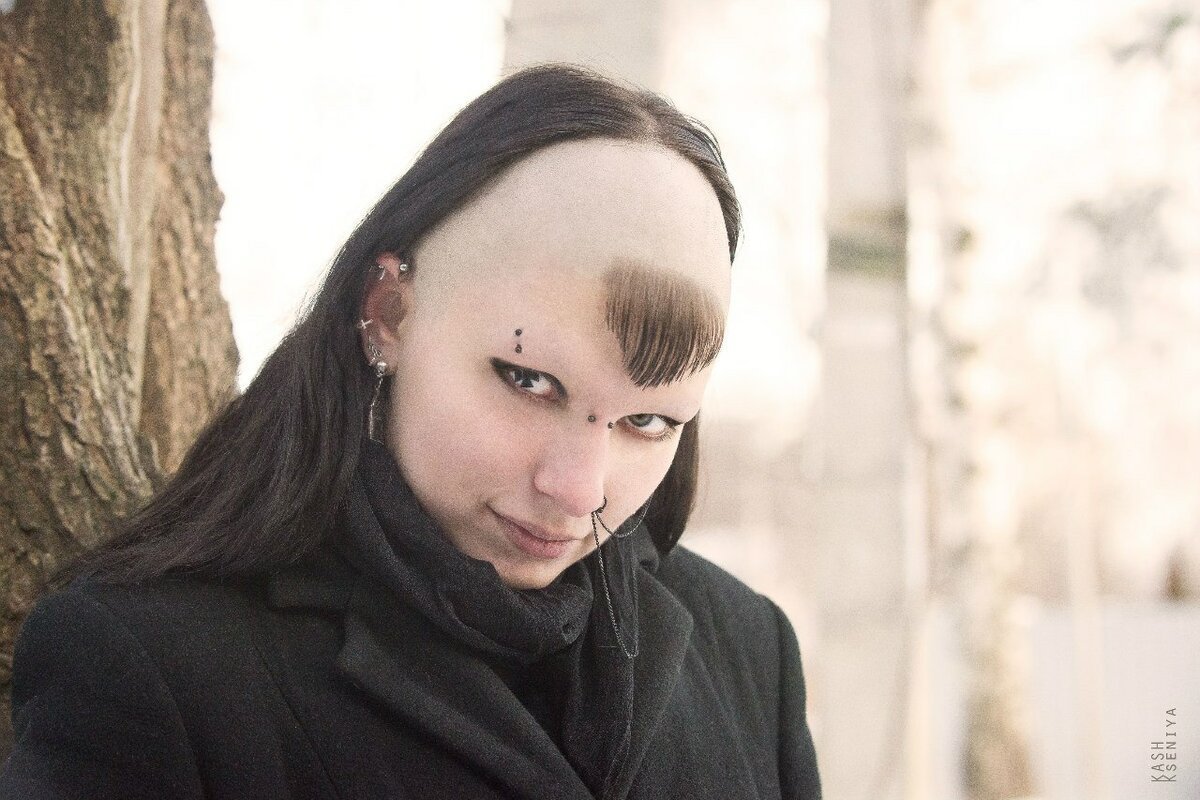 Лысая девушка с челкой