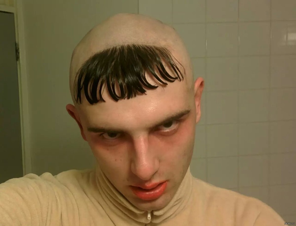 Прическа лысая голова с челкой