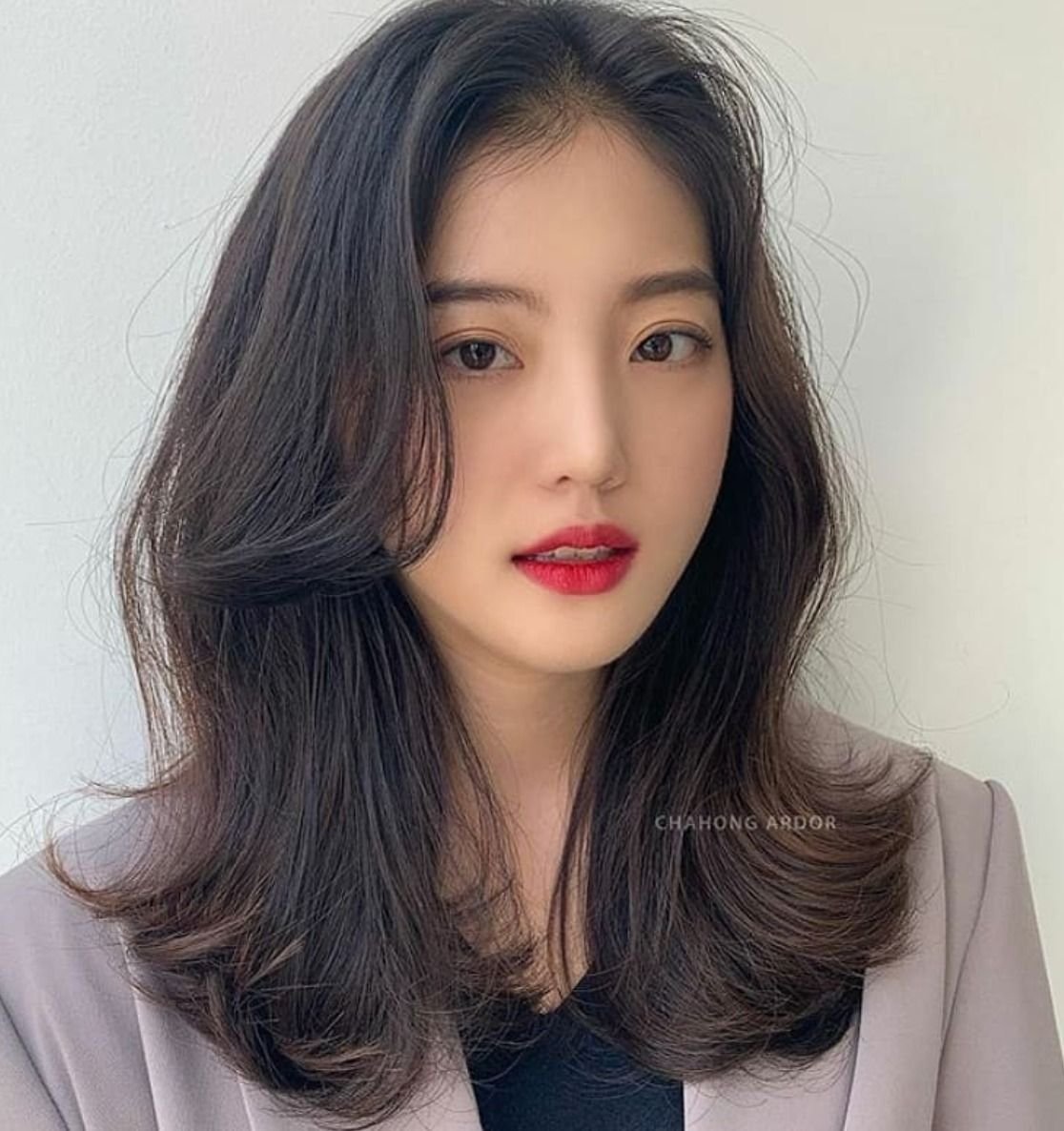 Средние волосы с корейской челкой