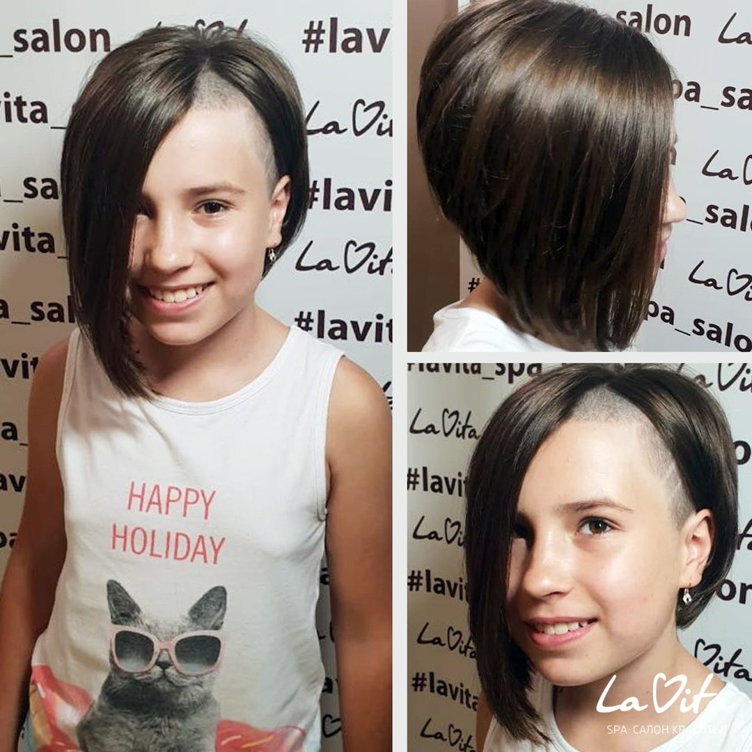 Стрижка каре с челкой на средние волосы для девочек-подростков