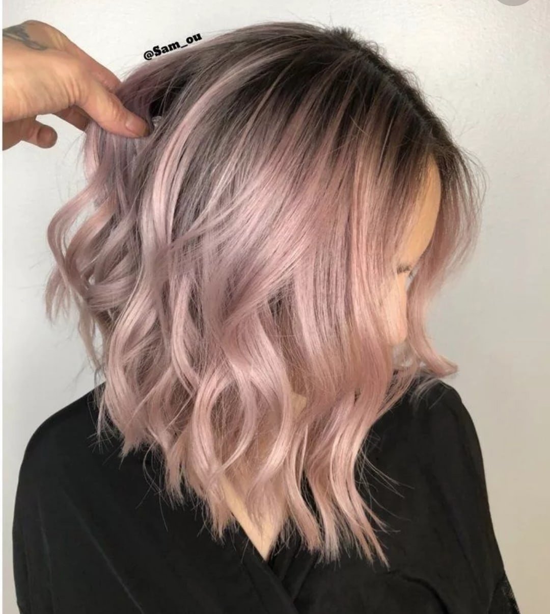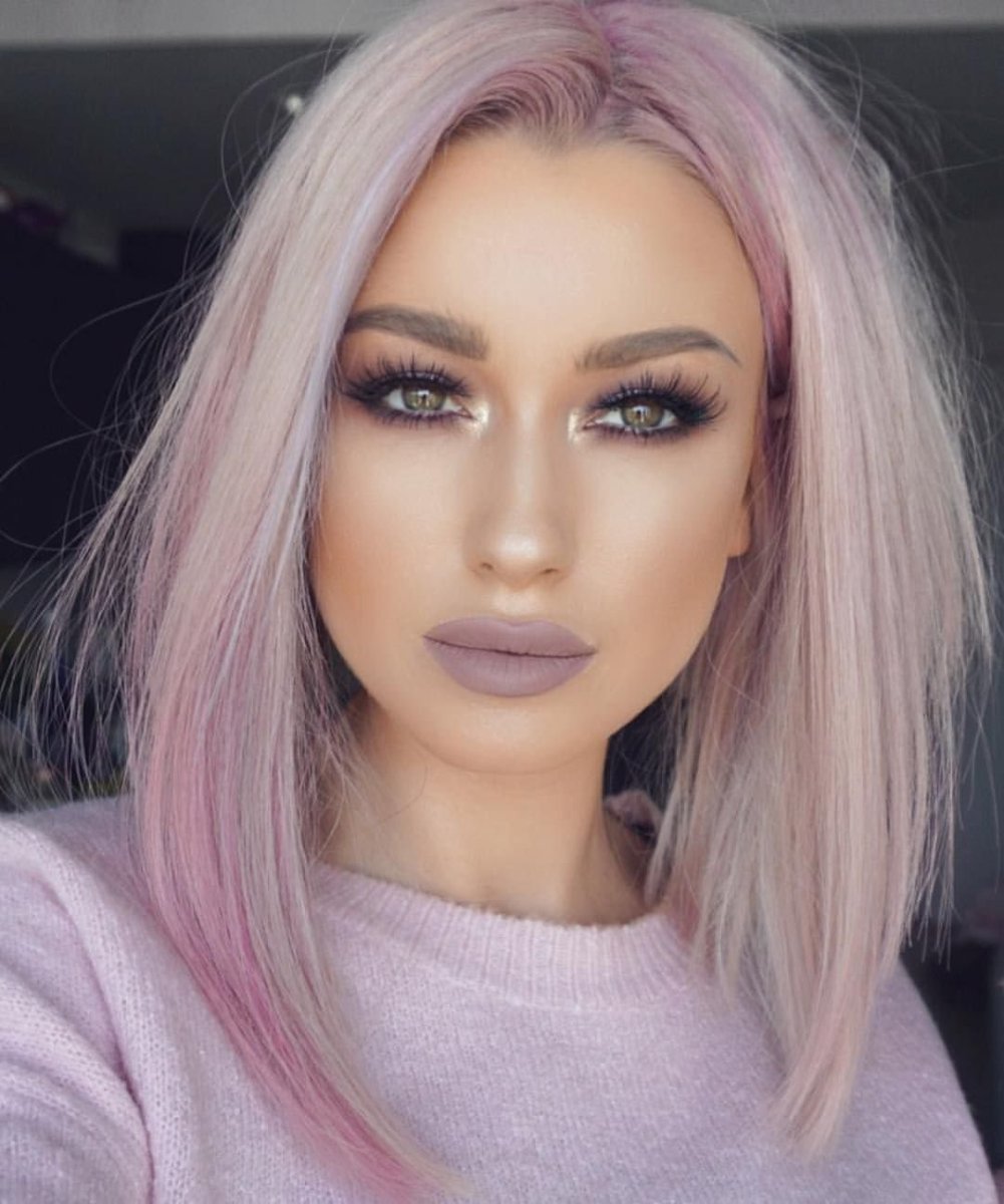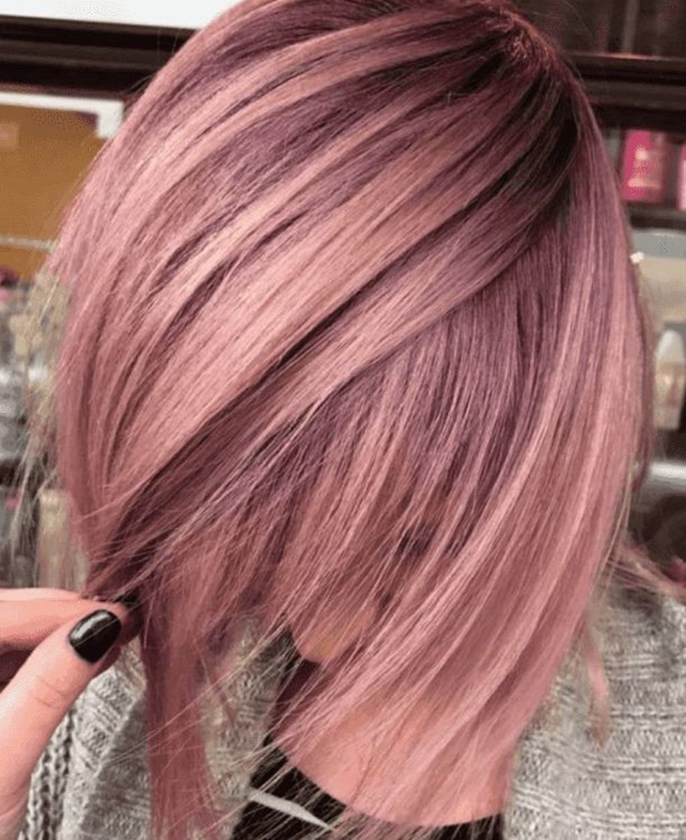 Пепельно-розовый цвет волос на короткие