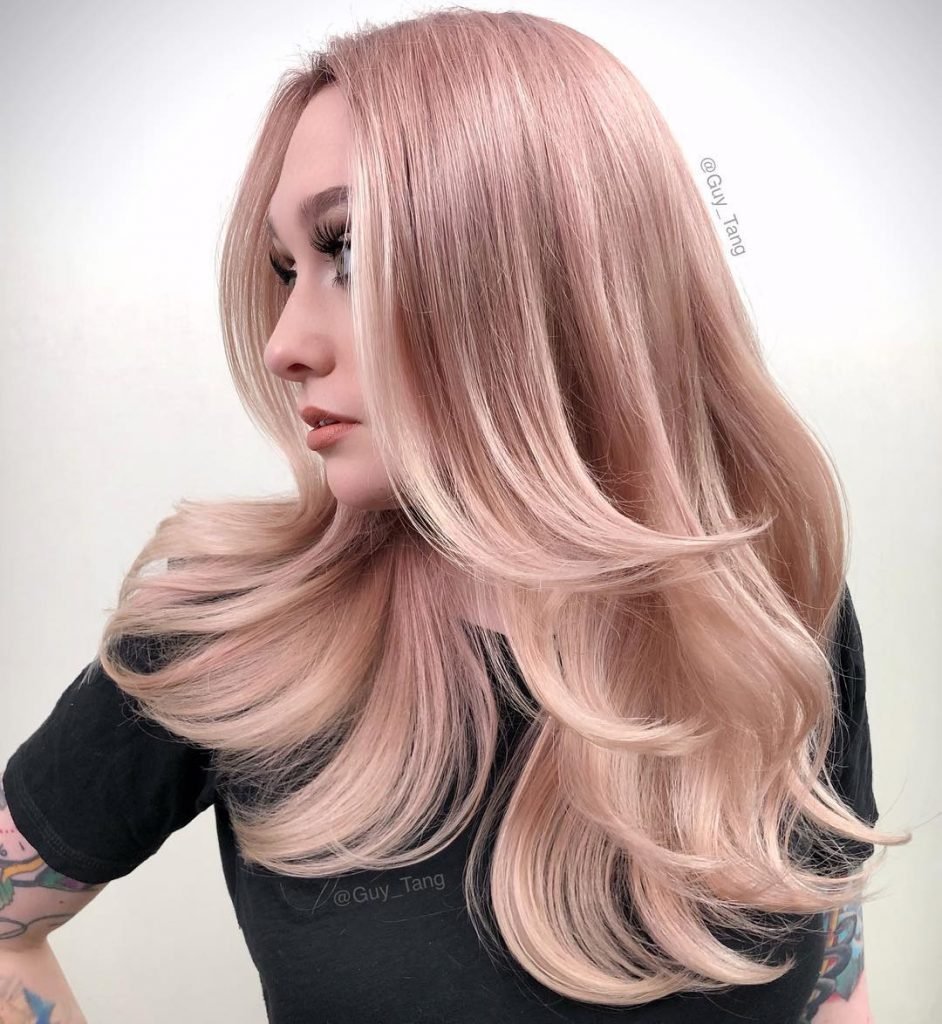 Роуз Голд цвет волос на блонд
