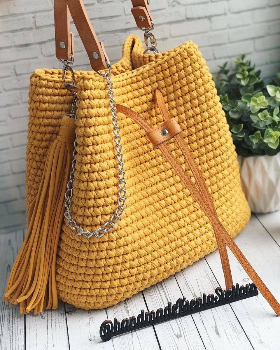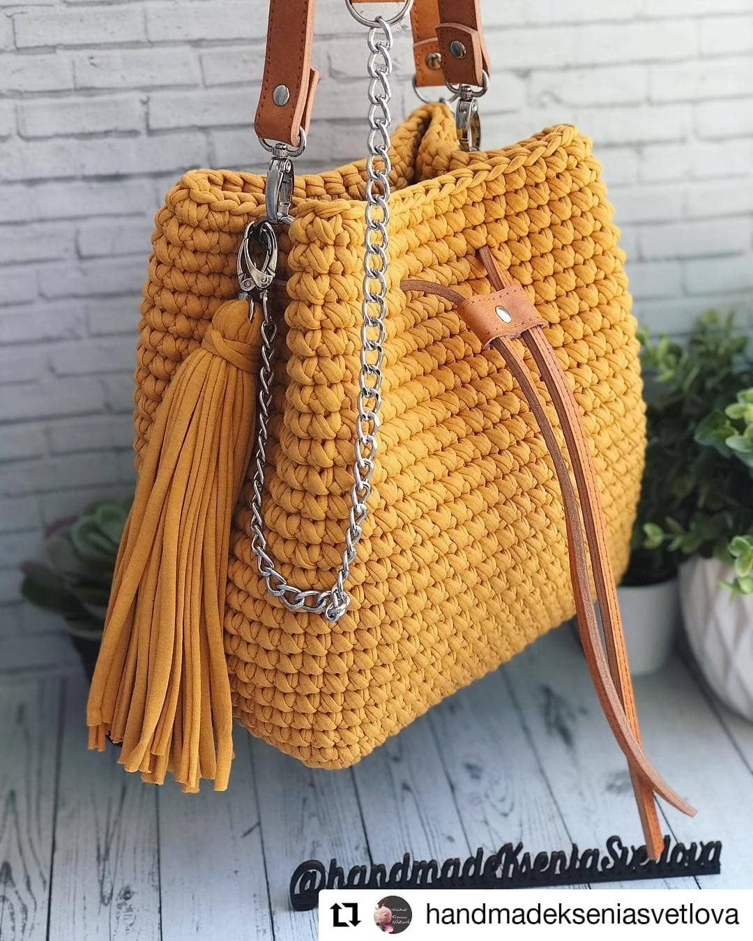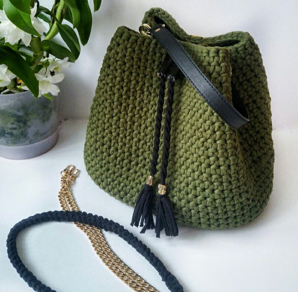 Сумка шоппер крючком из трикотажной пряжи схемы