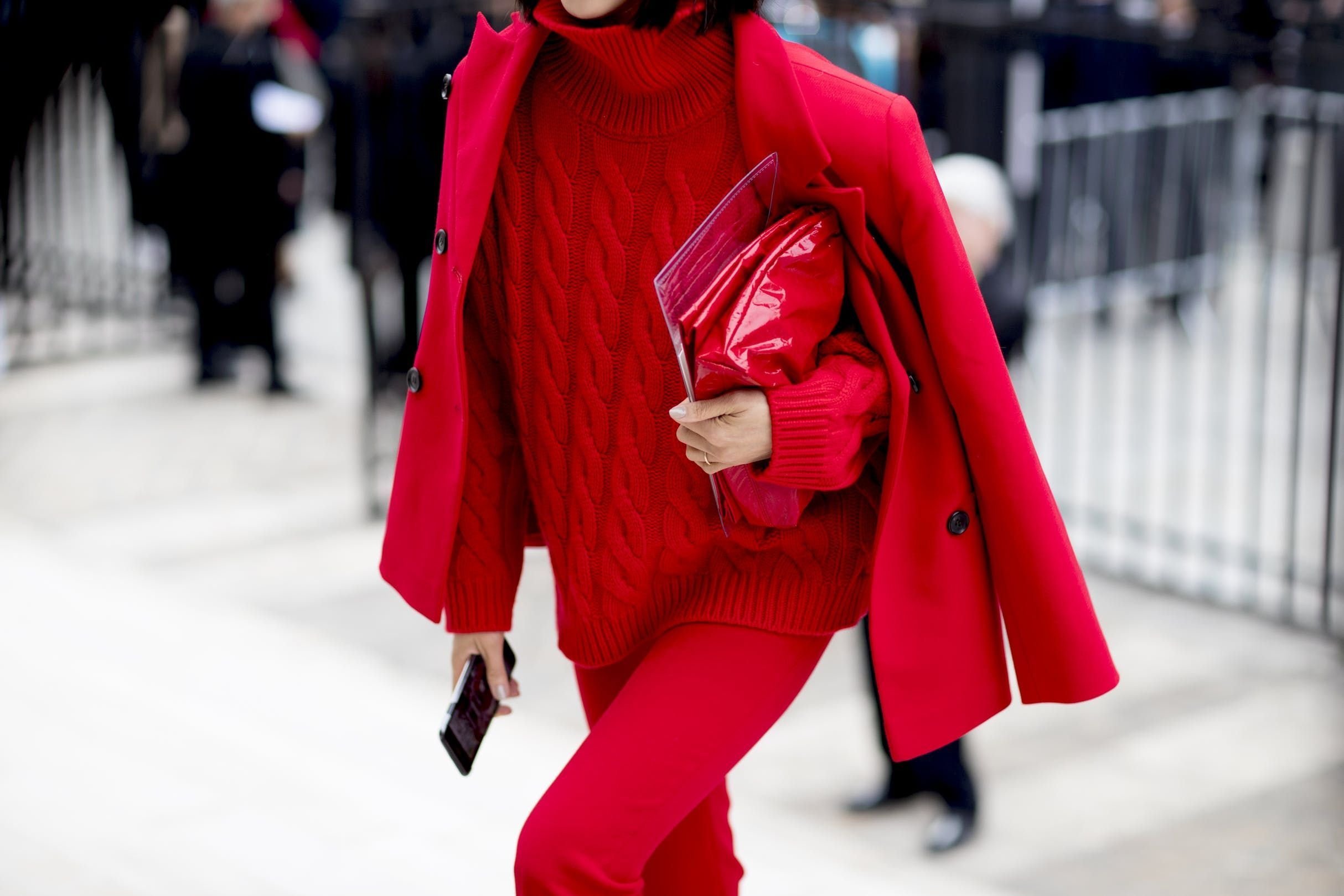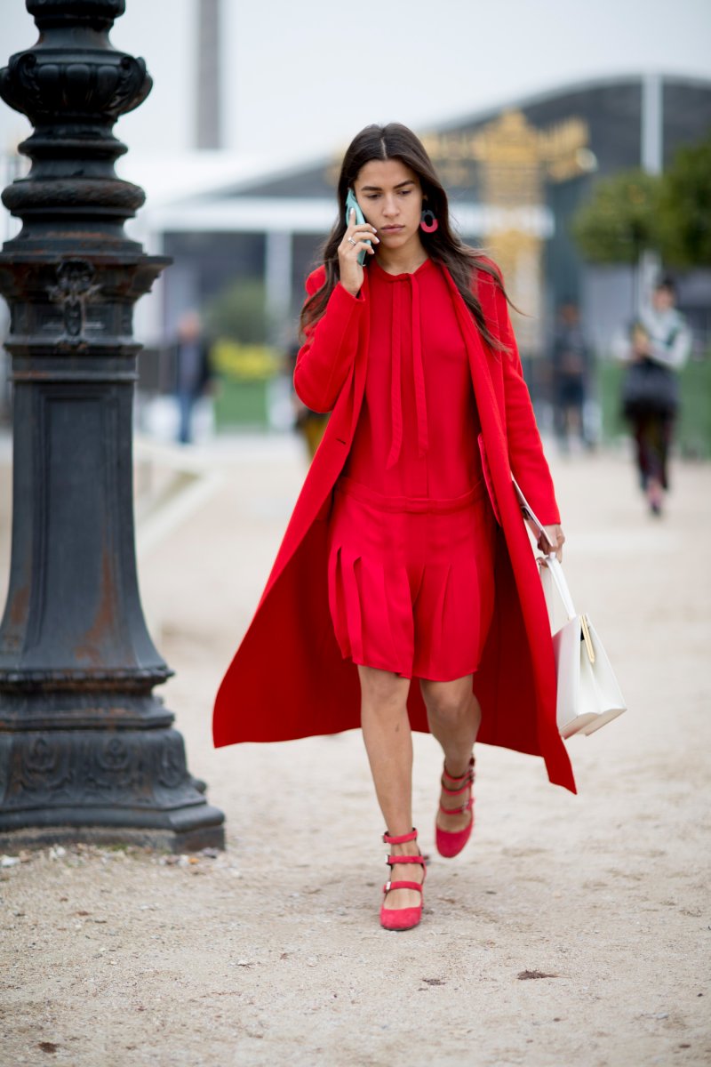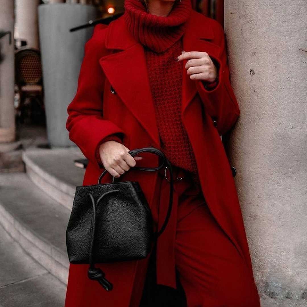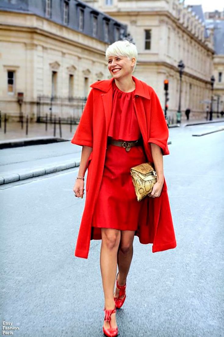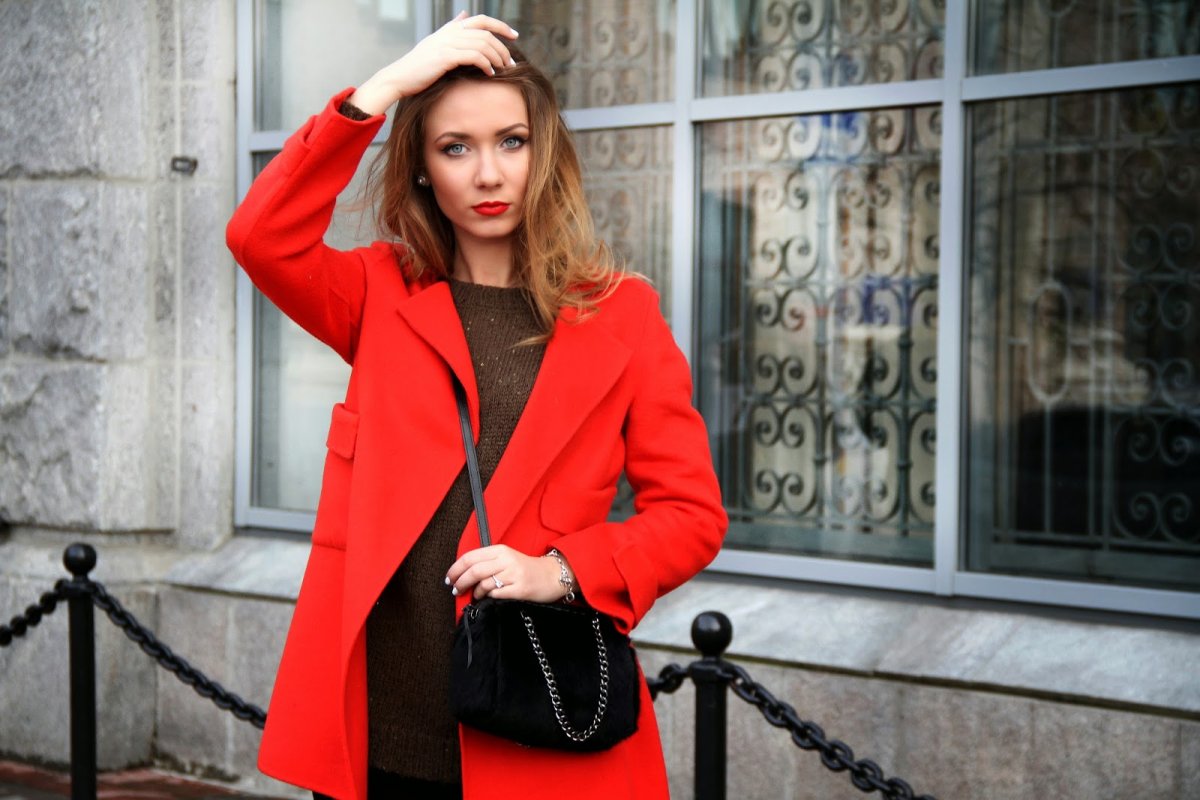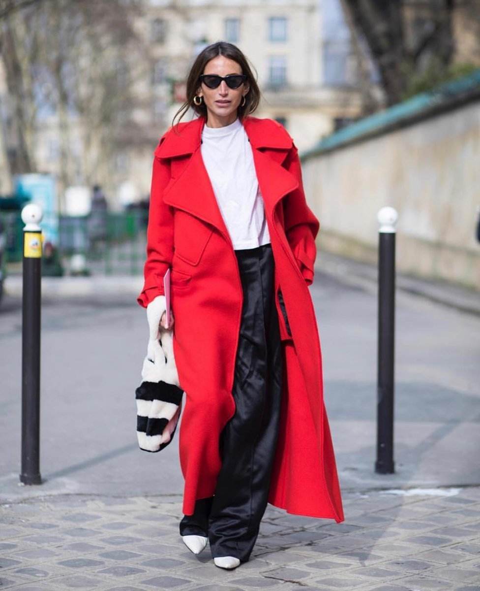 Красное пальто стрит стайл