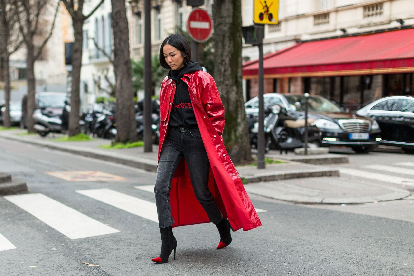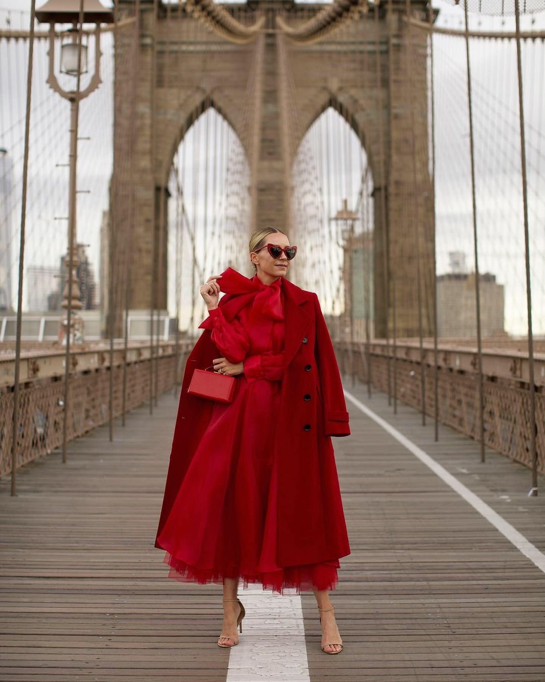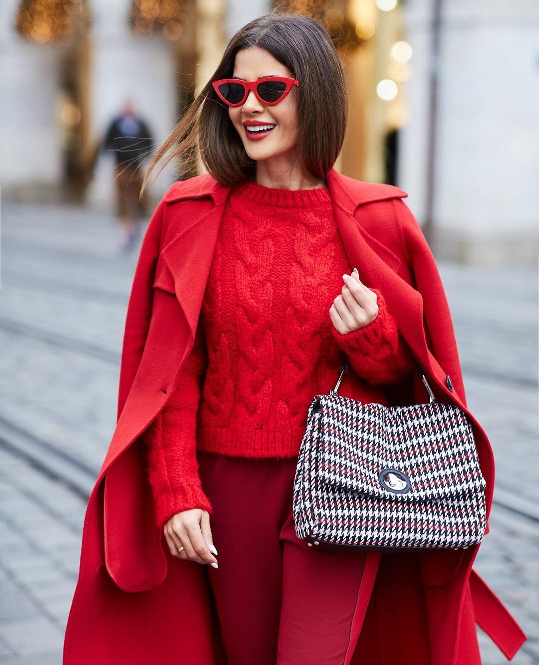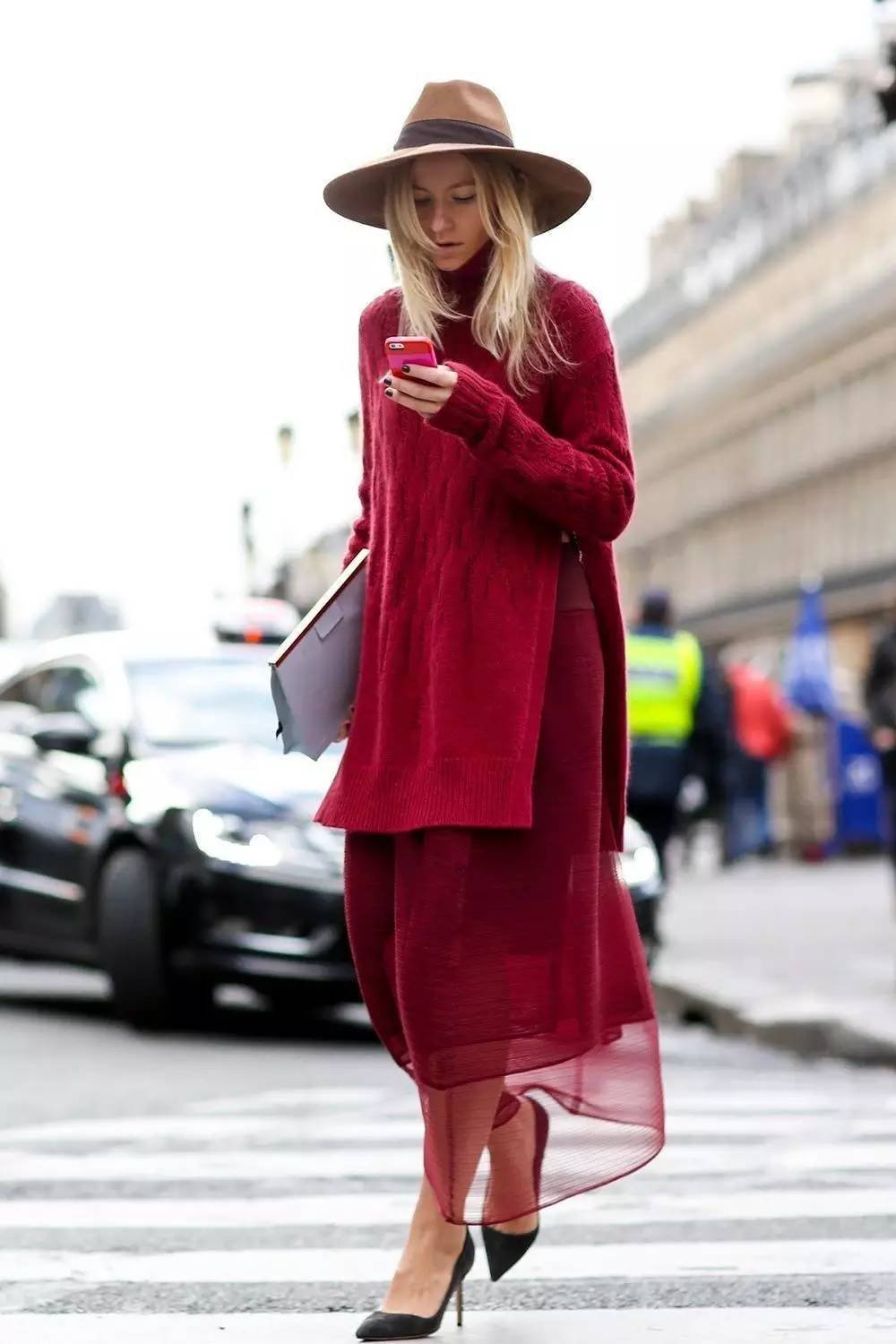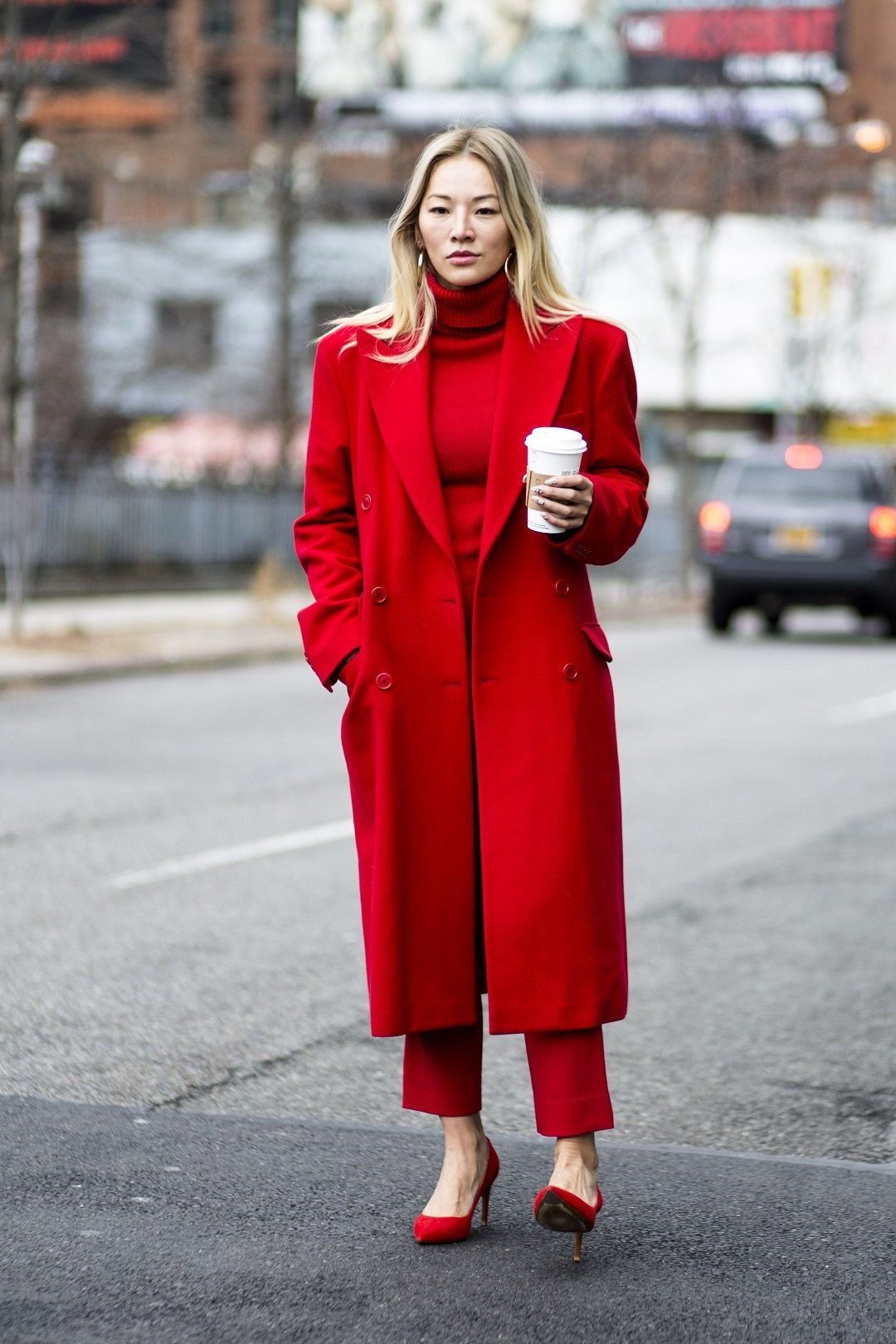 Красное пальто стрит стайл