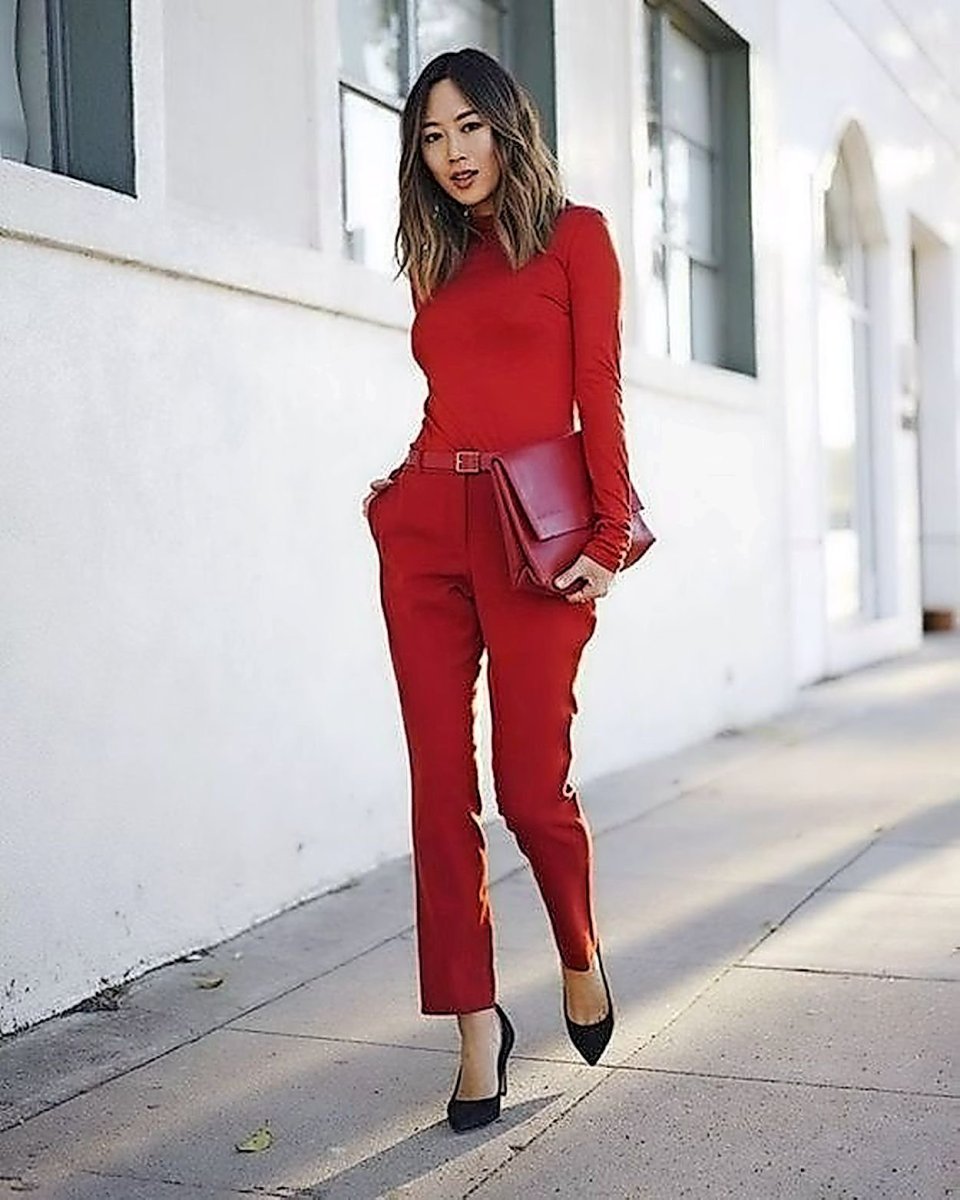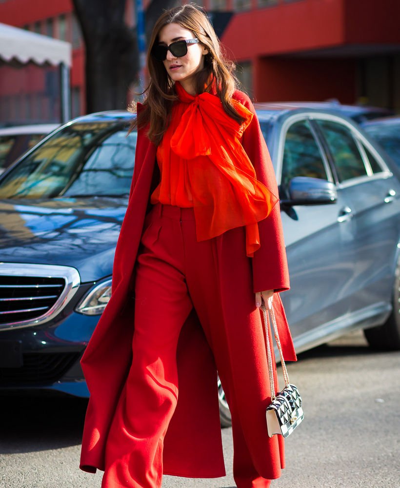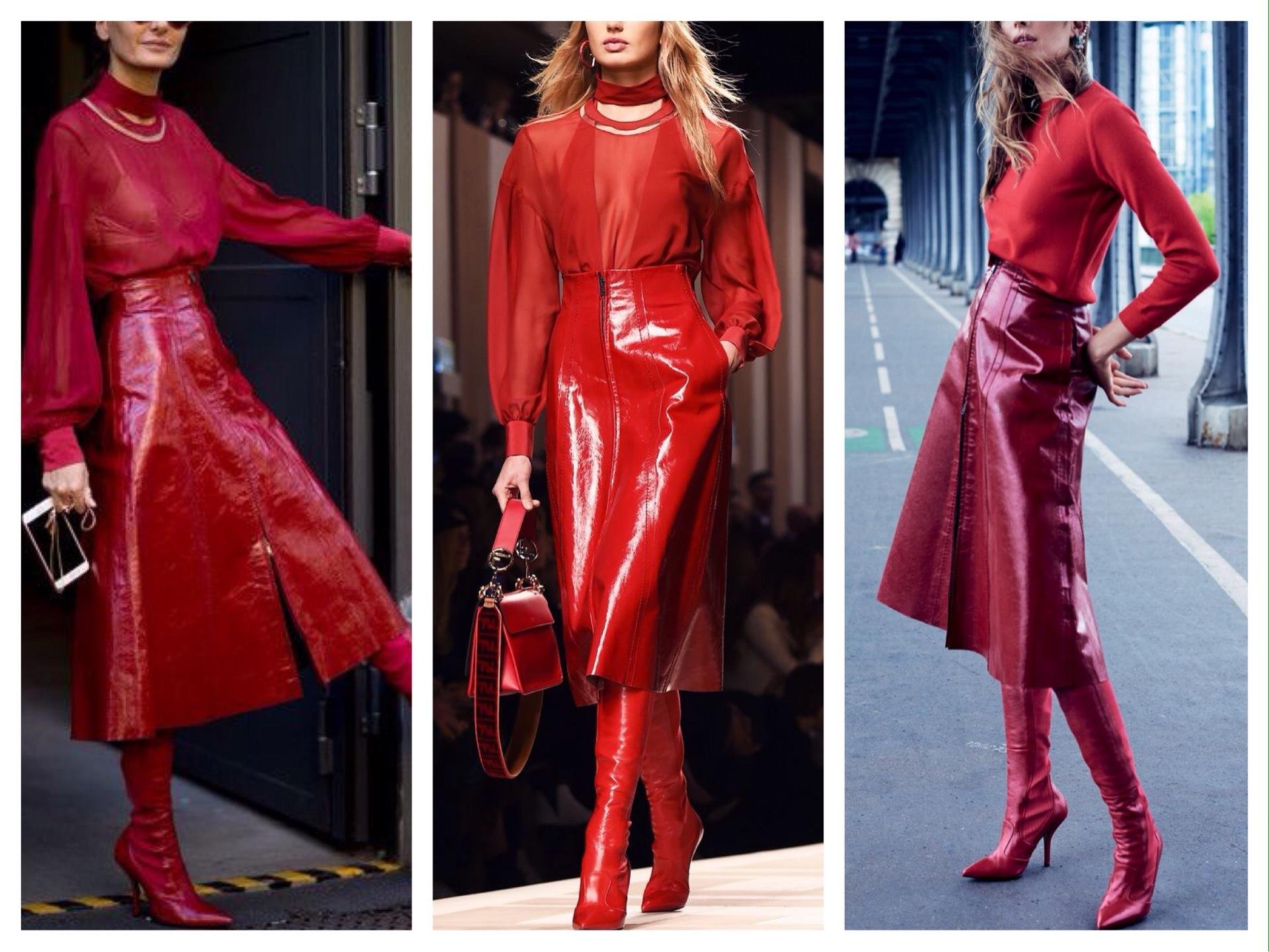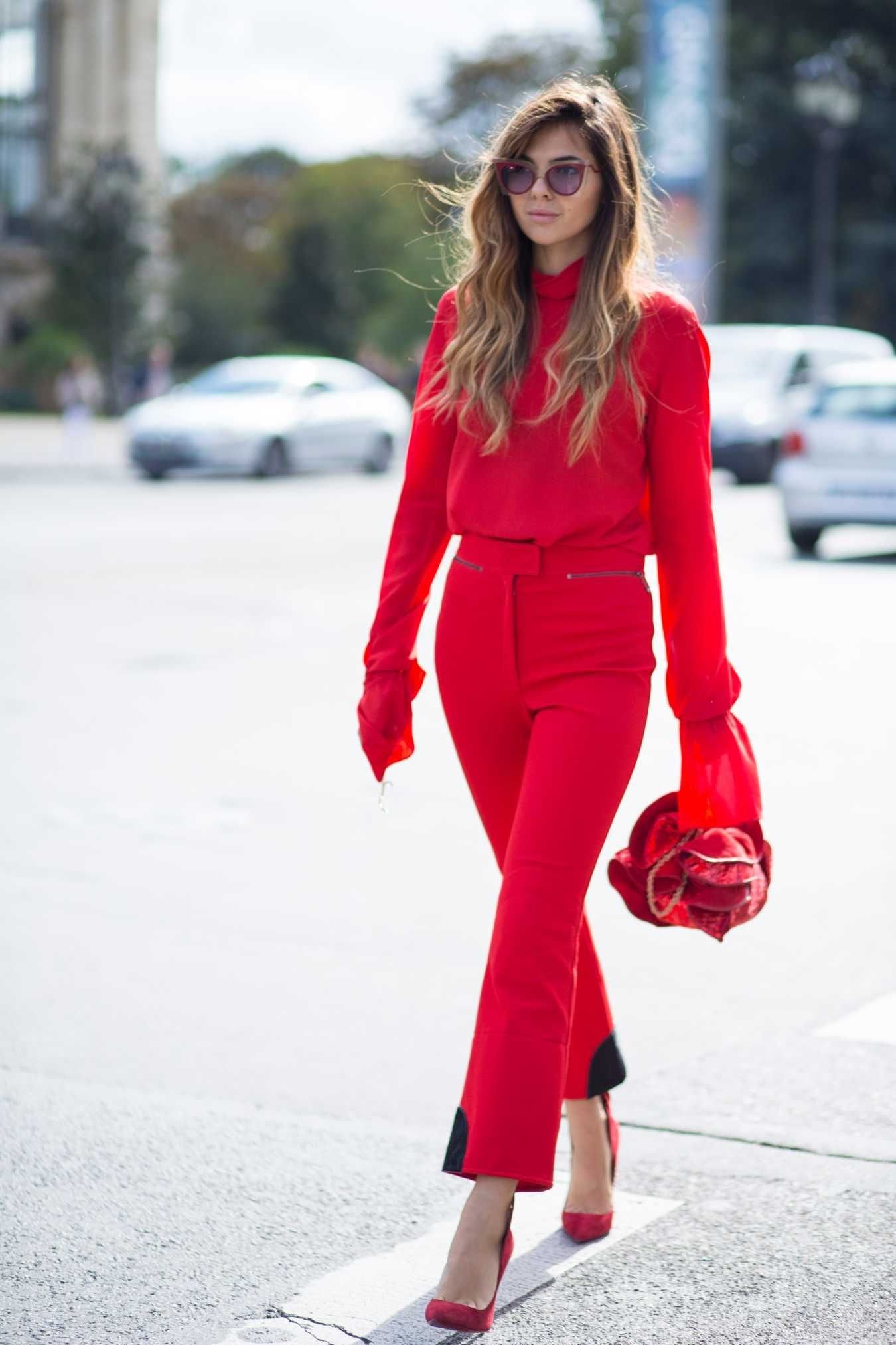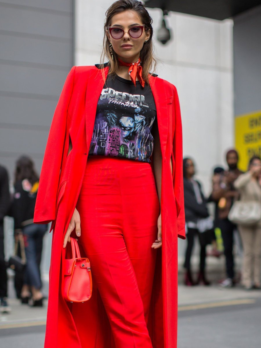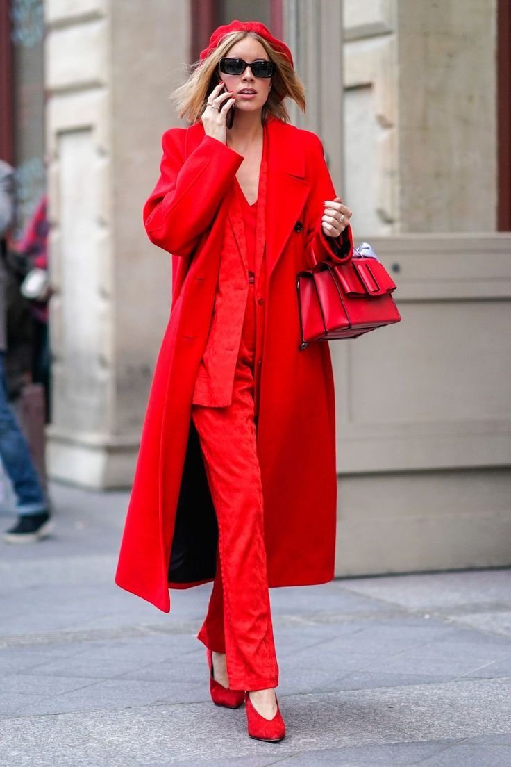 Красный тотал лук стрит стайл 2020