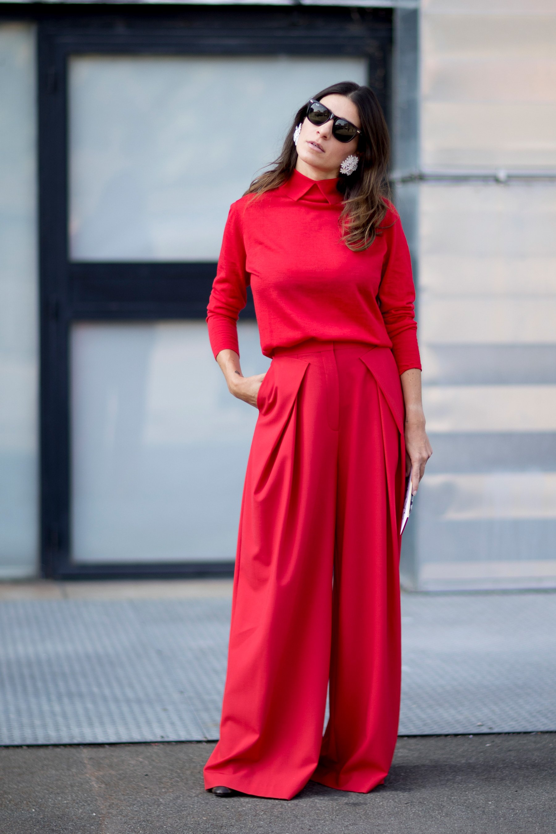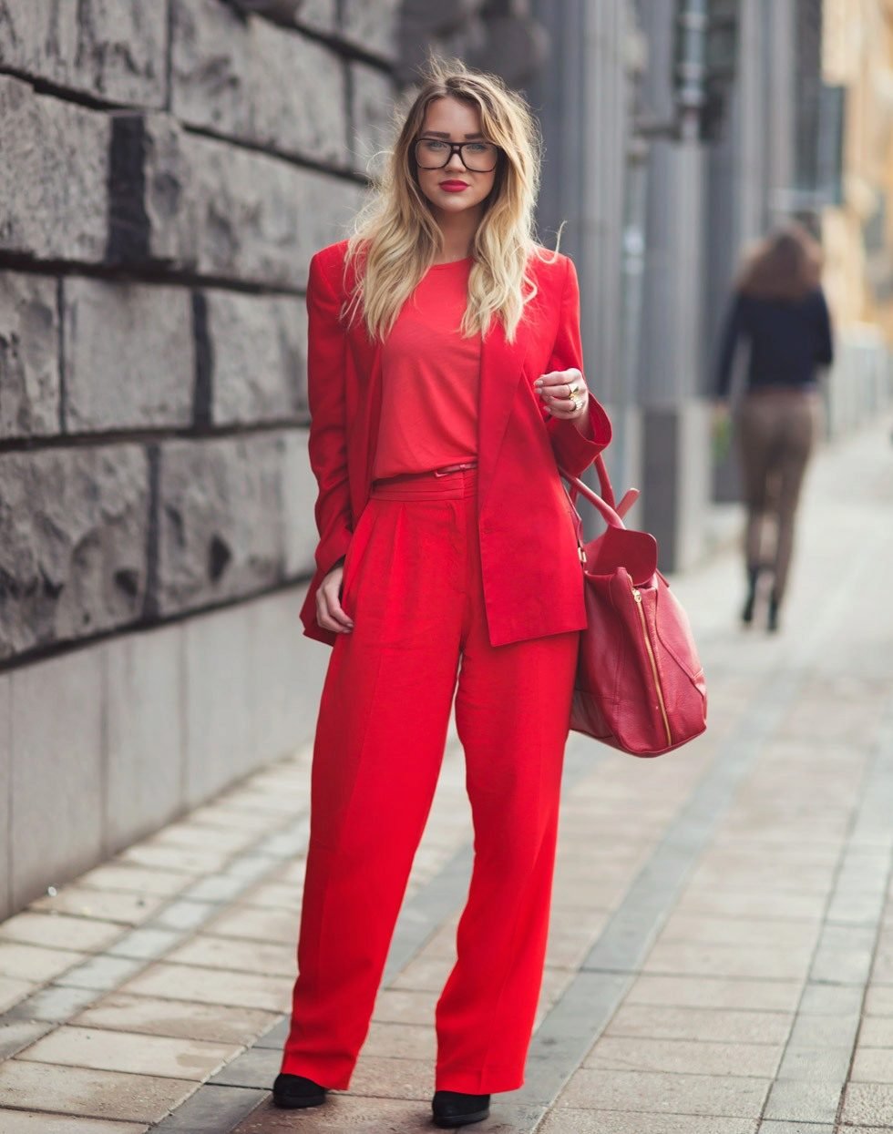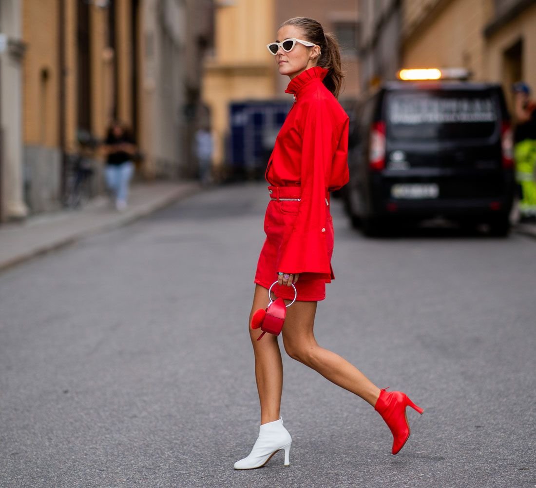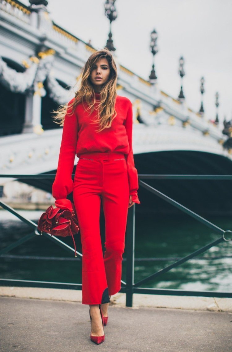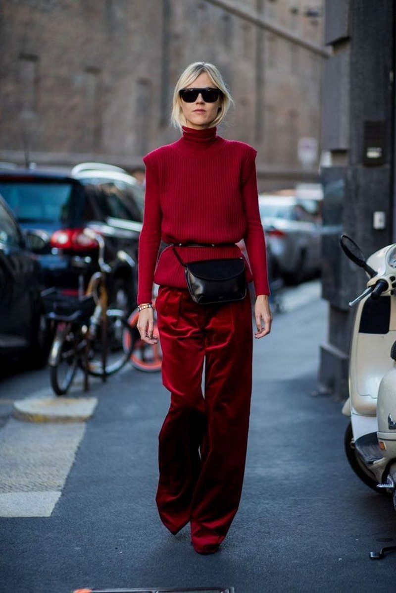Красный тотал лук стрит стайл 2020