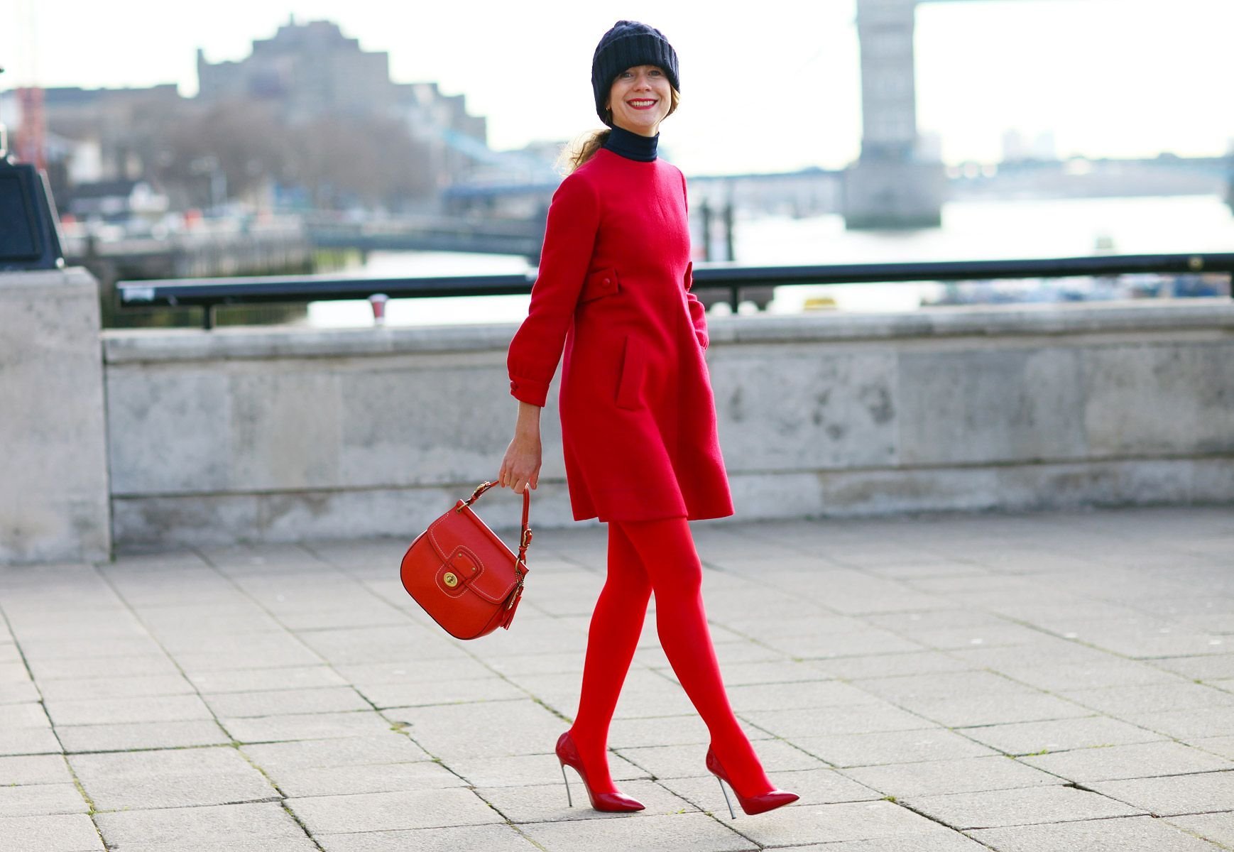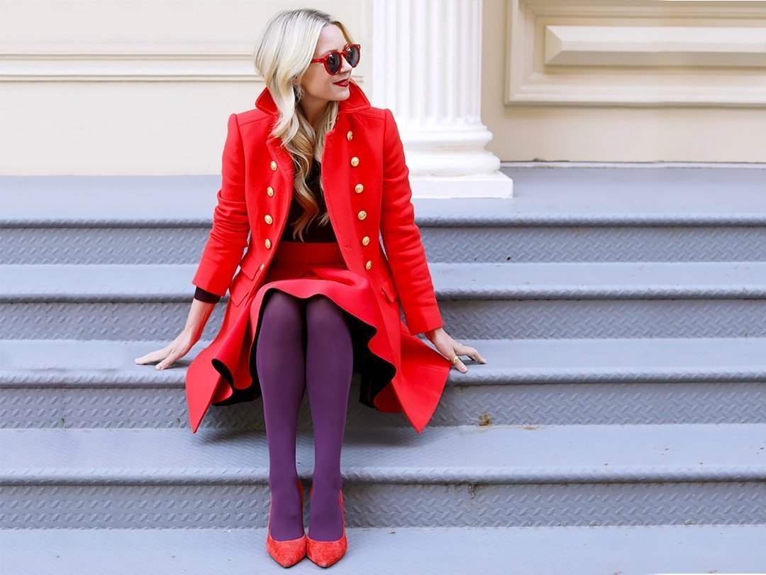 Образ с красными колготками