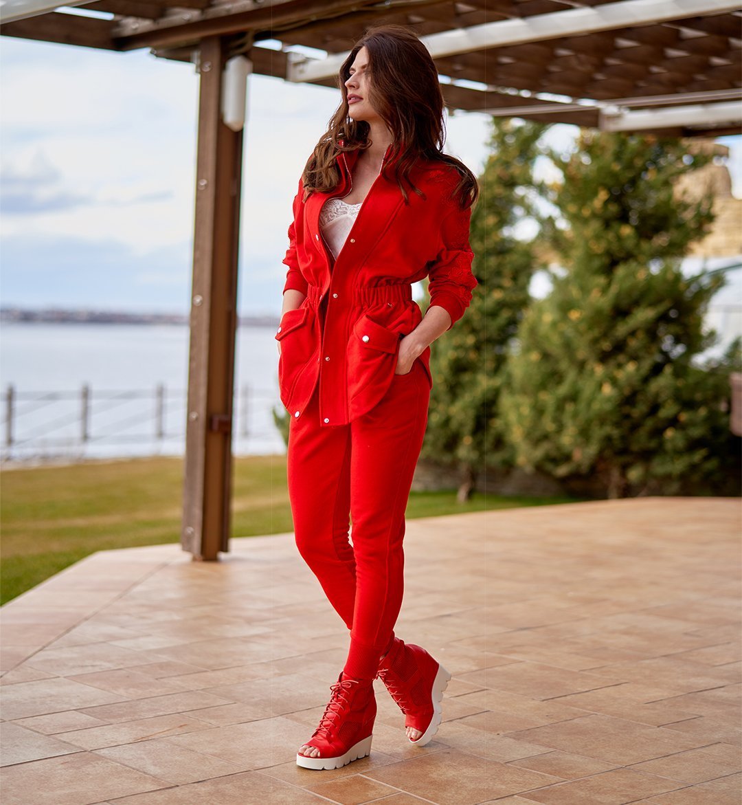 Стильная одежда красного цвета