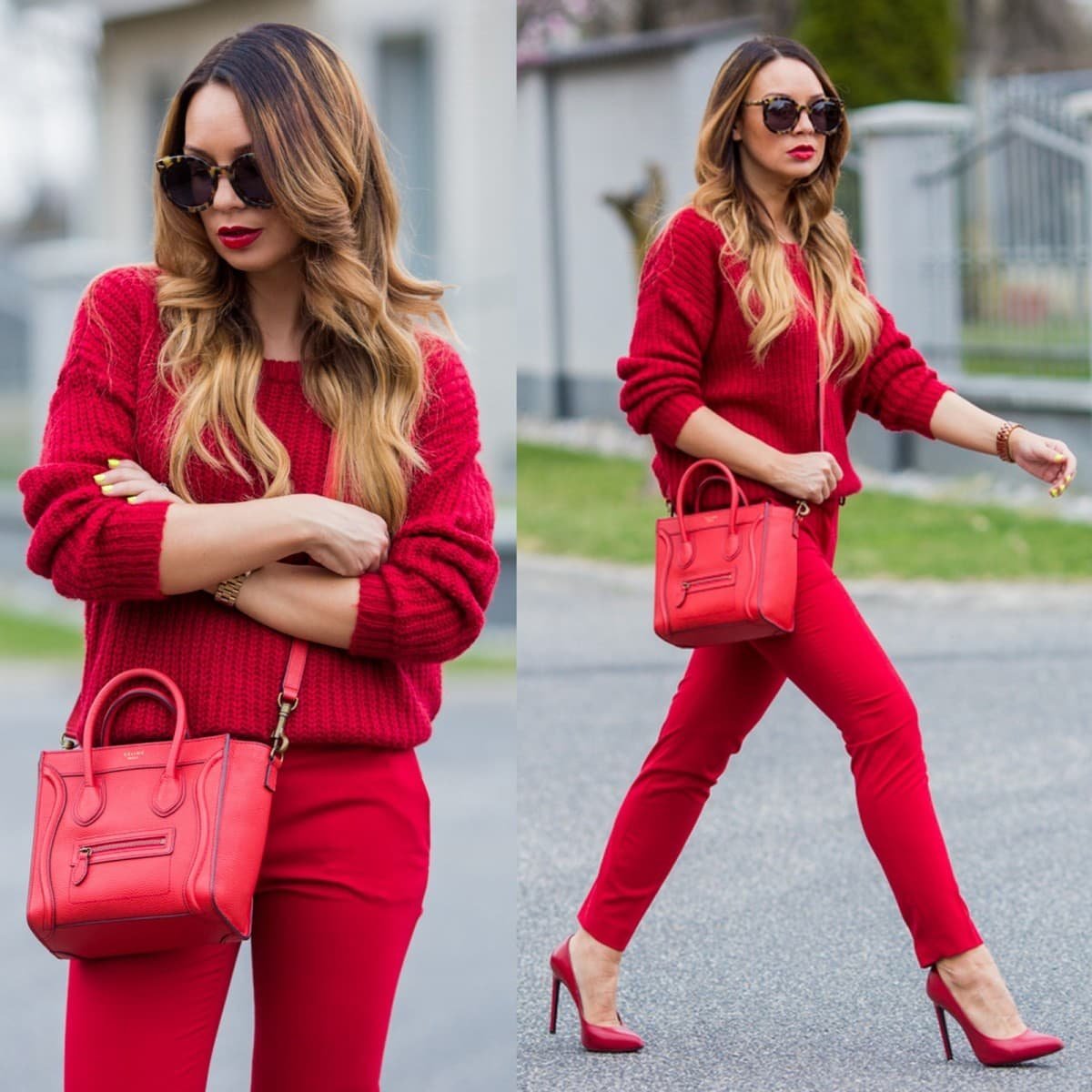Красная помада сочетается красная одежда