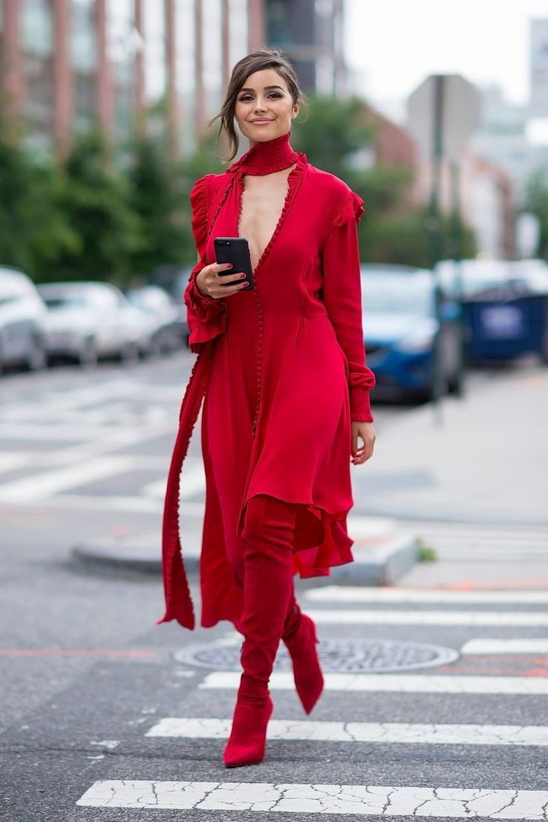 Красное платье с ботфортами