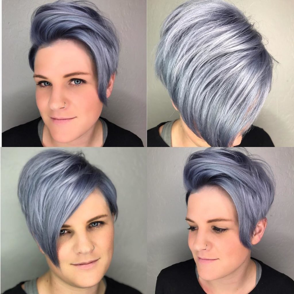 Пепельно синий цвет волос на короткие волосы
