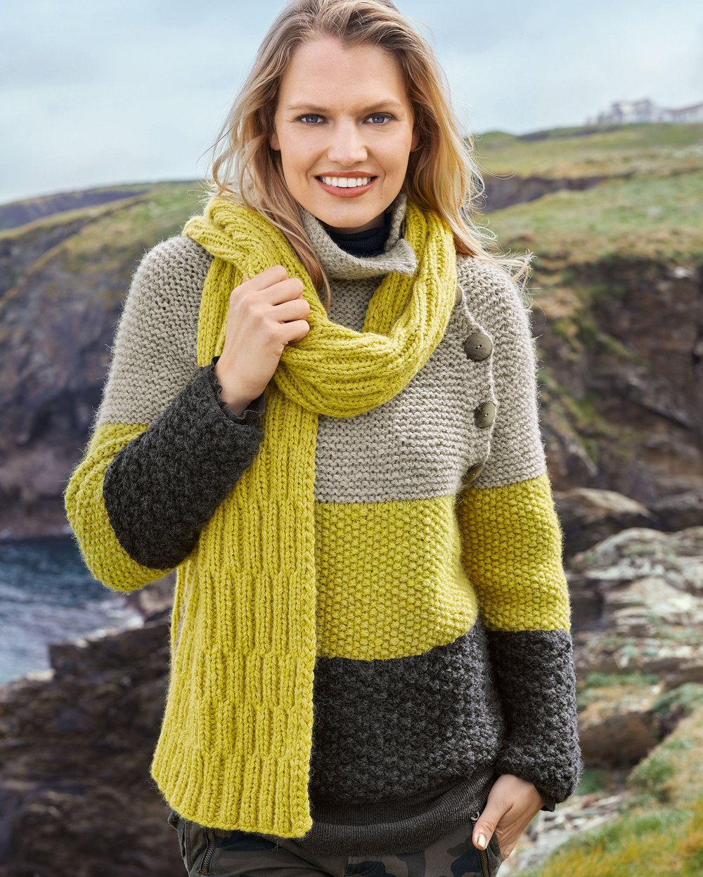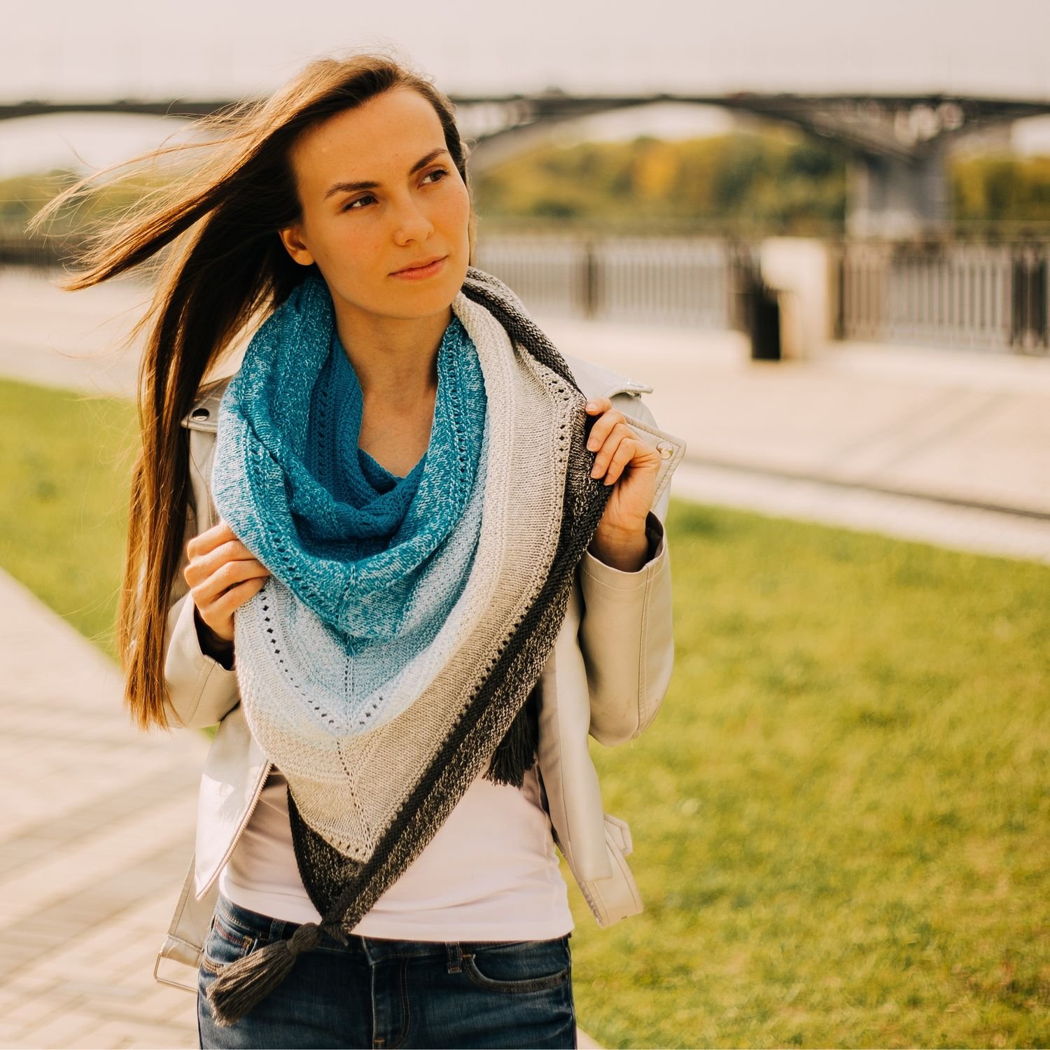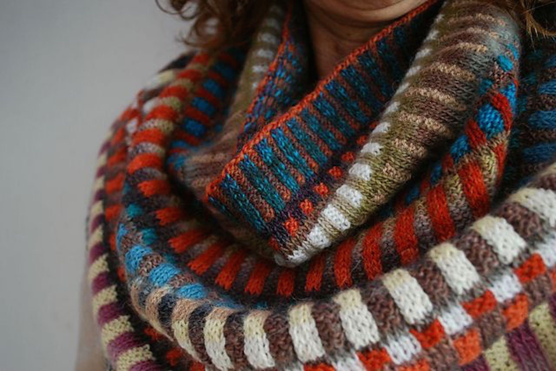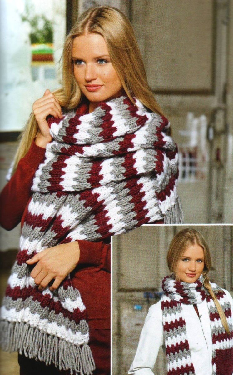 Связать трехцветный шарф