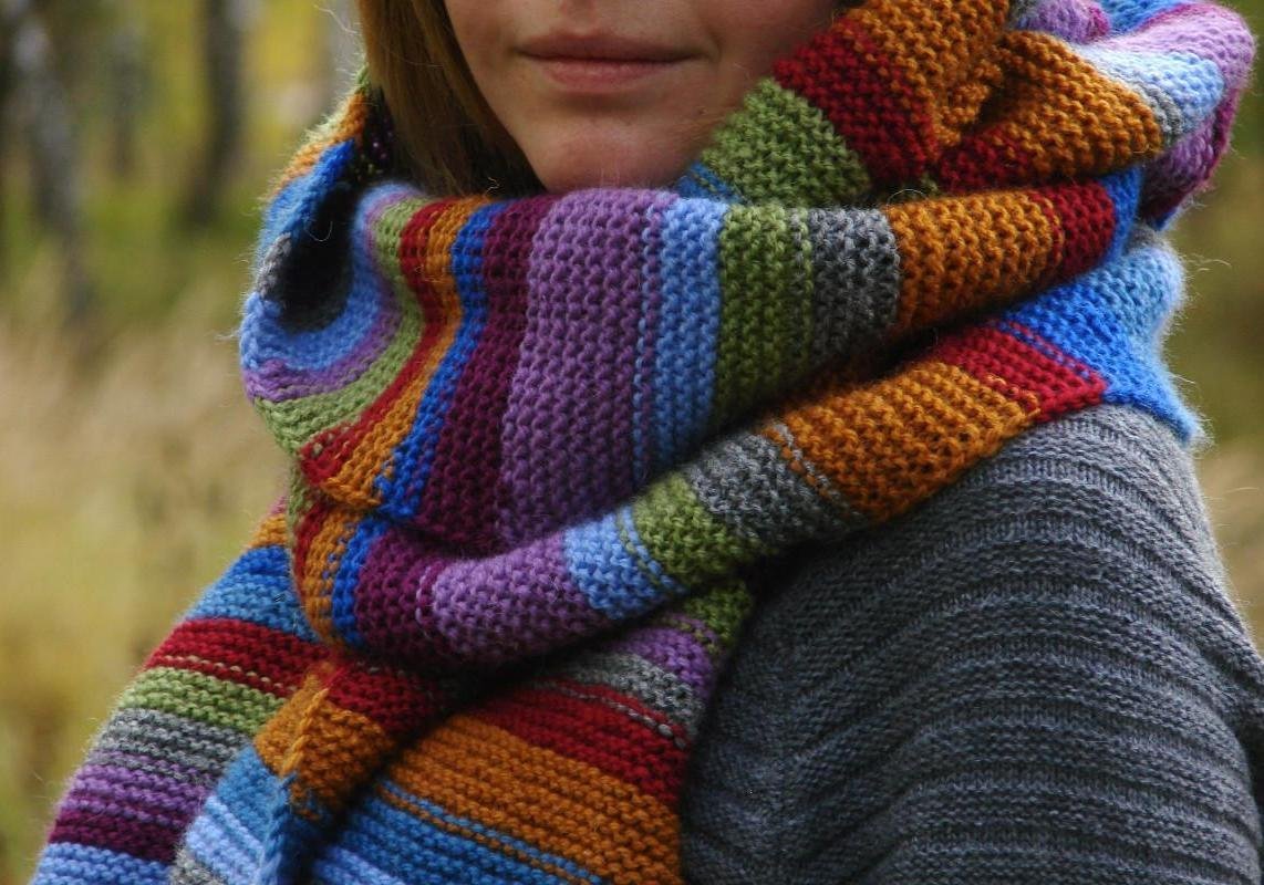 Цветной шарф спицами