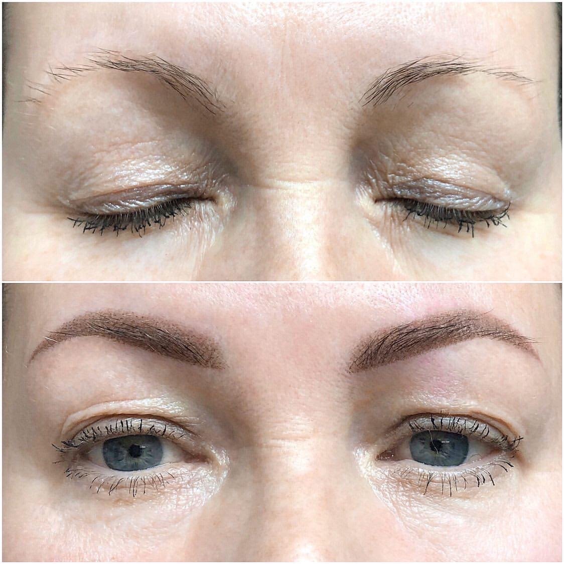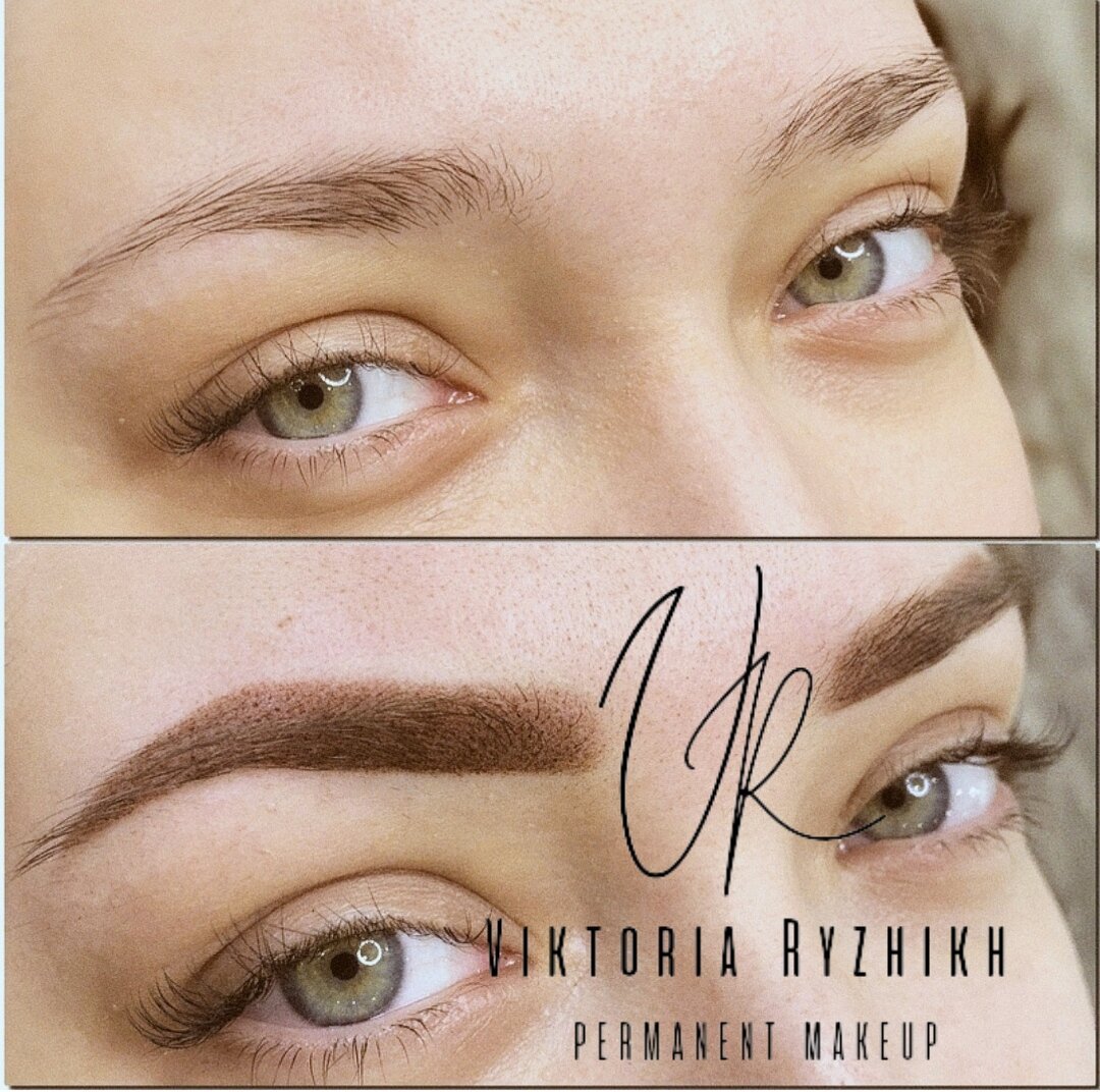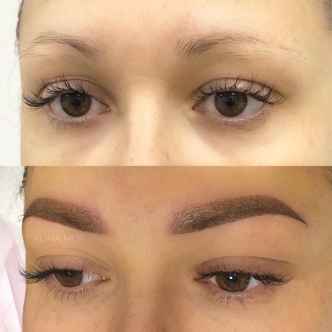 Перманентный макияж бровей техника волоски плюс тени