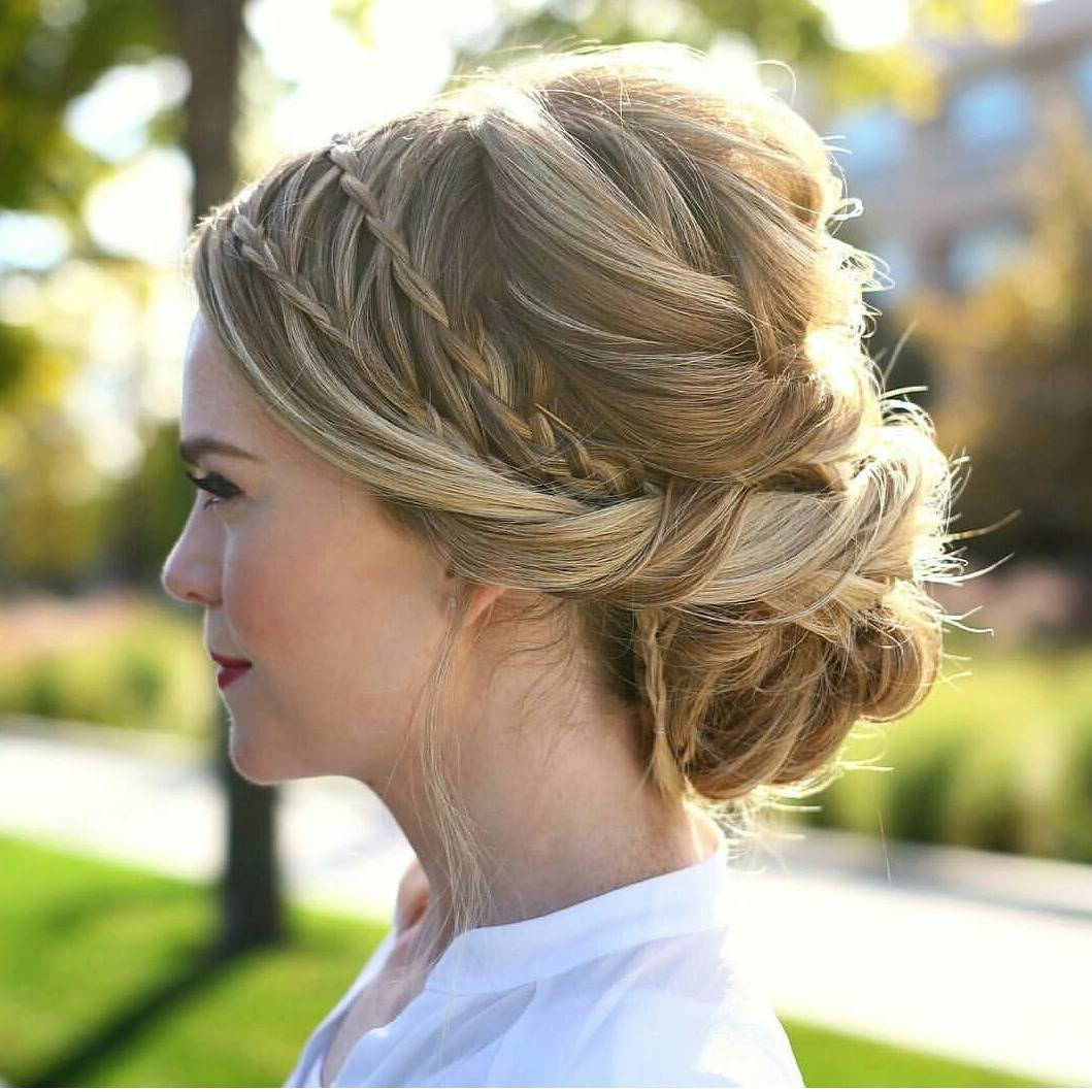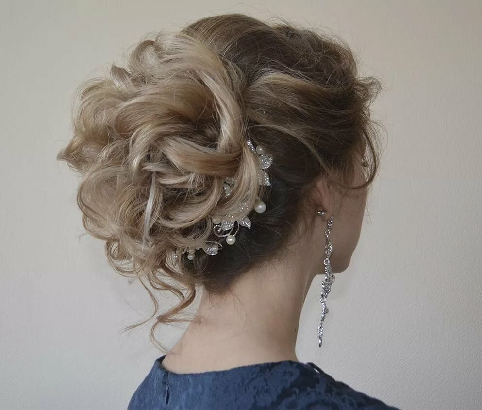 Прическа на выпускной пучок с локонами