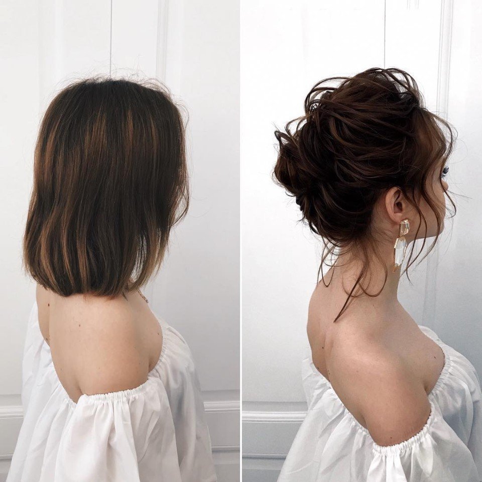 Прическа пучок на короткие волосы