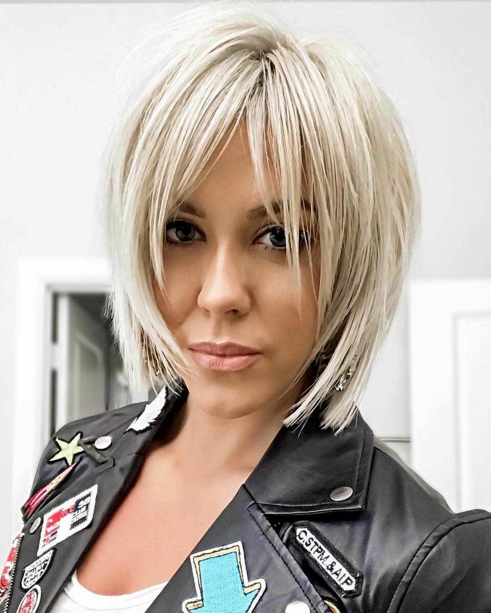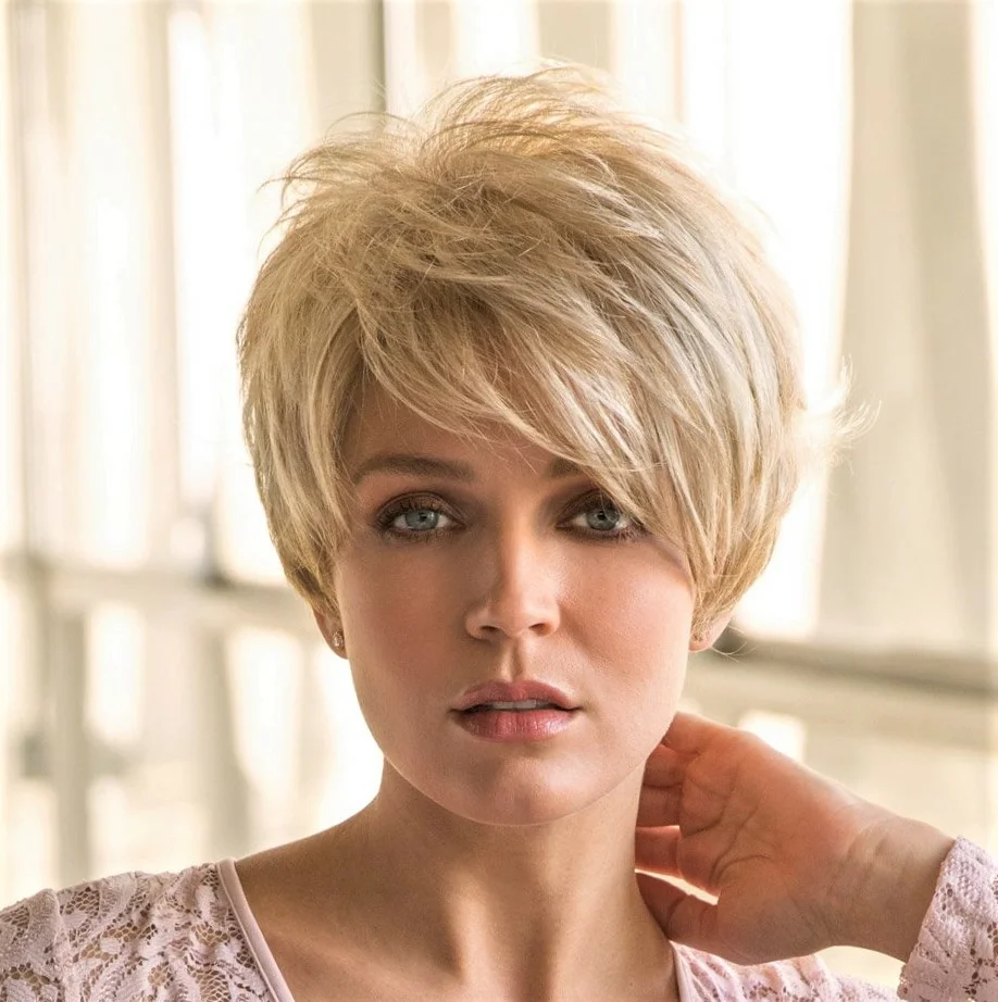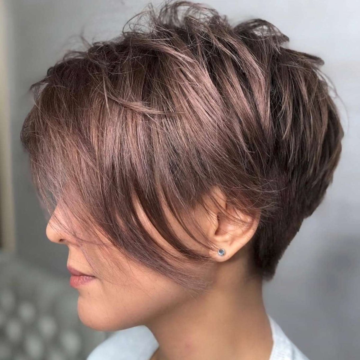 Стрижка Пикси-Боб на средние волосы для женщин за 40 с челкой