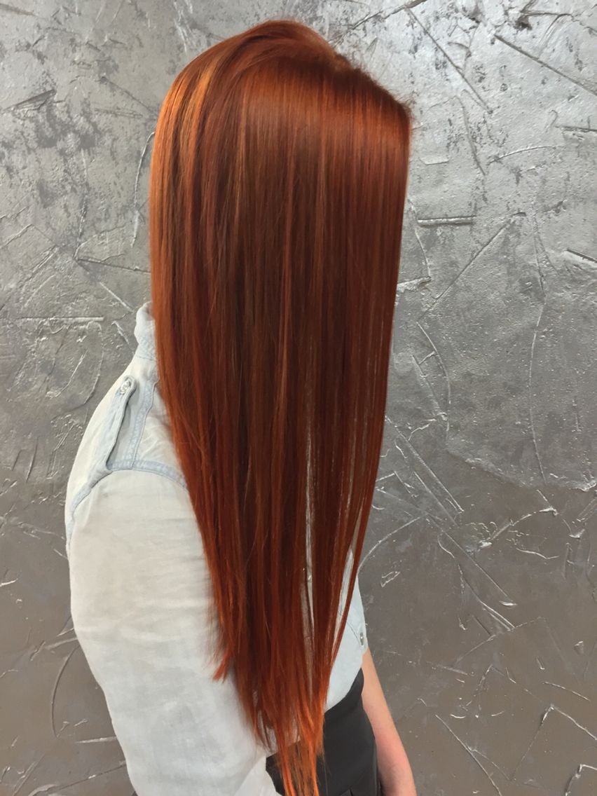 Покраска в рыжий на прямые волосы