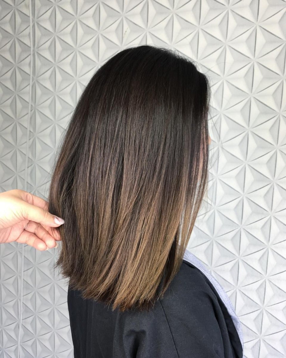 Балаяж на темные прямые волосы до плеч