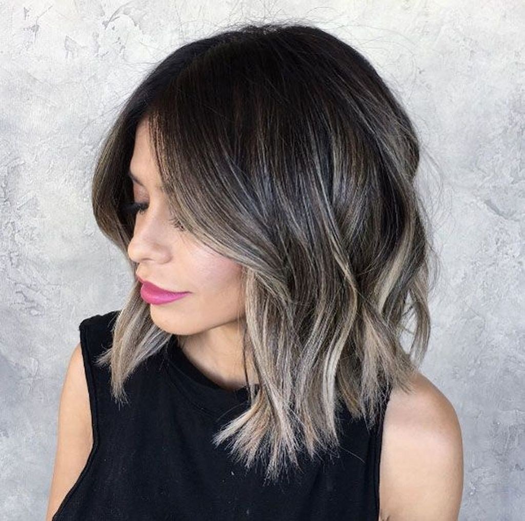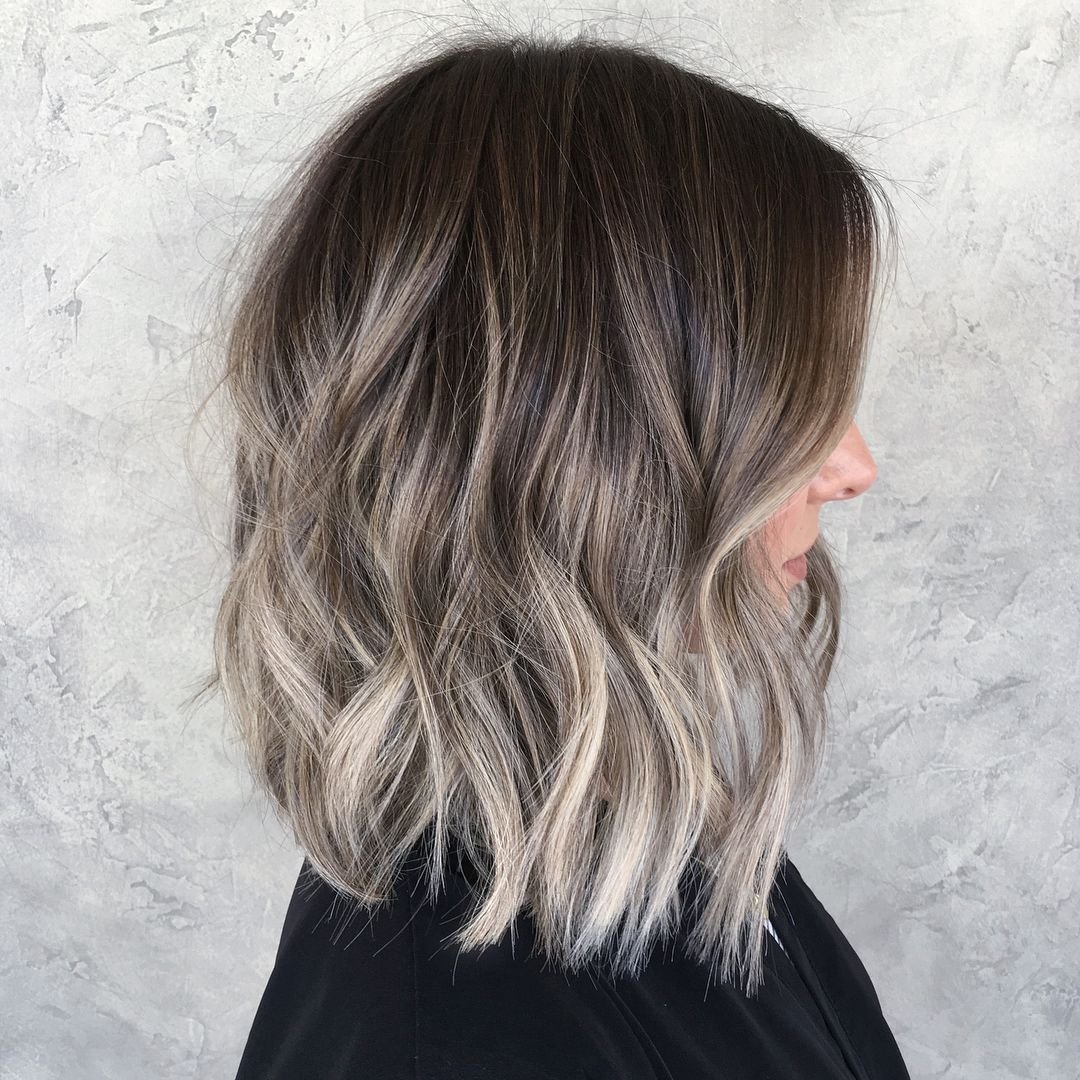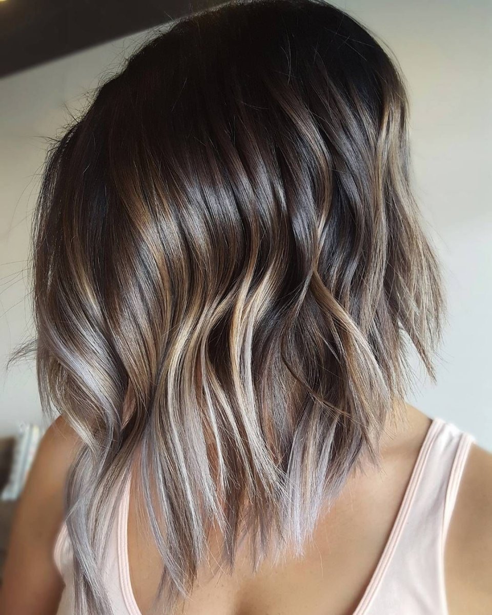 Пепельный балаяж на темное каре