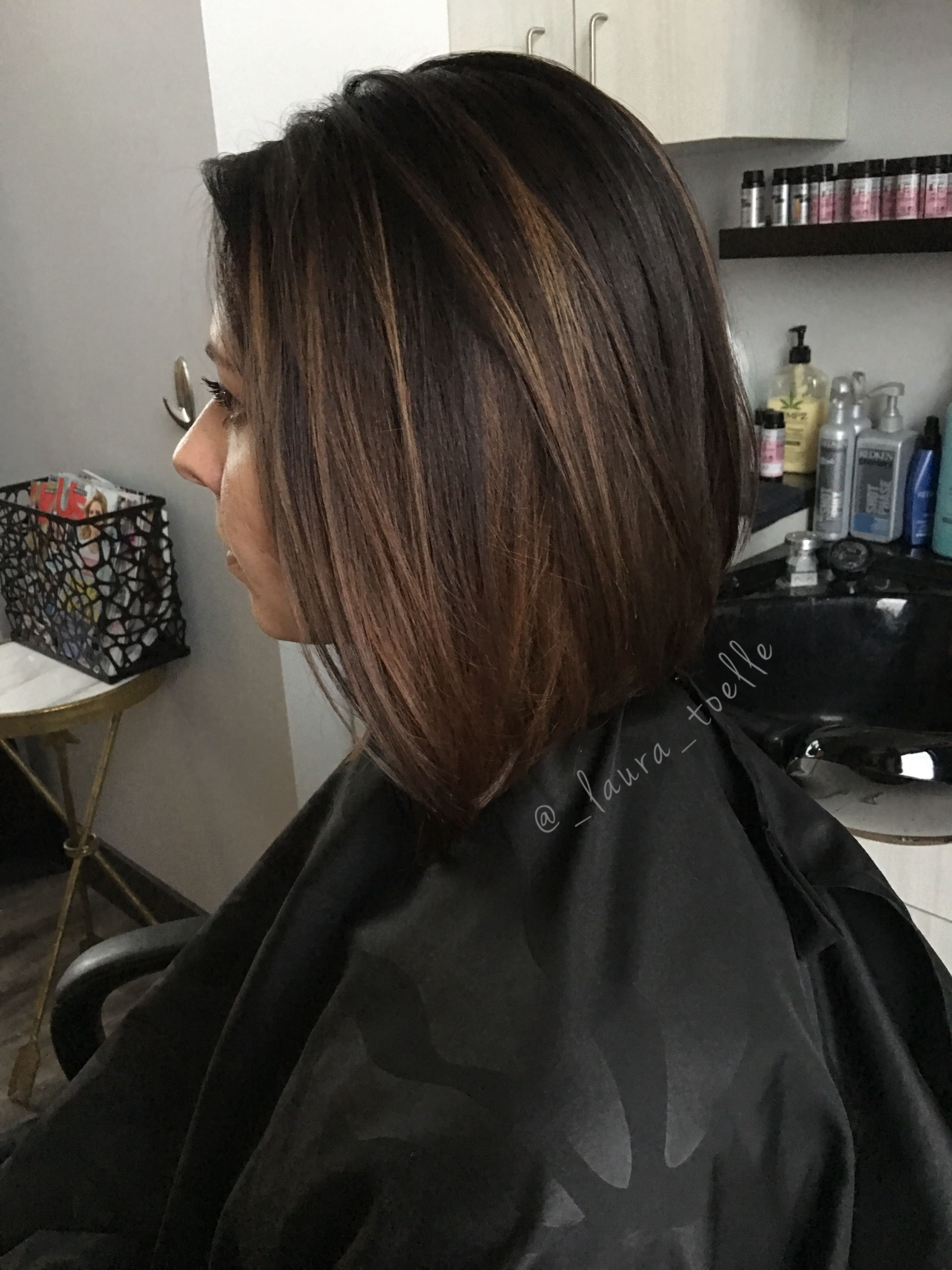 Окрашивание на темные волосы до плеч