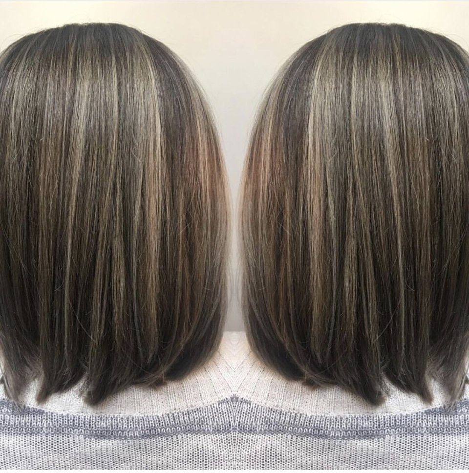 Окрашивание седых волос балаяж