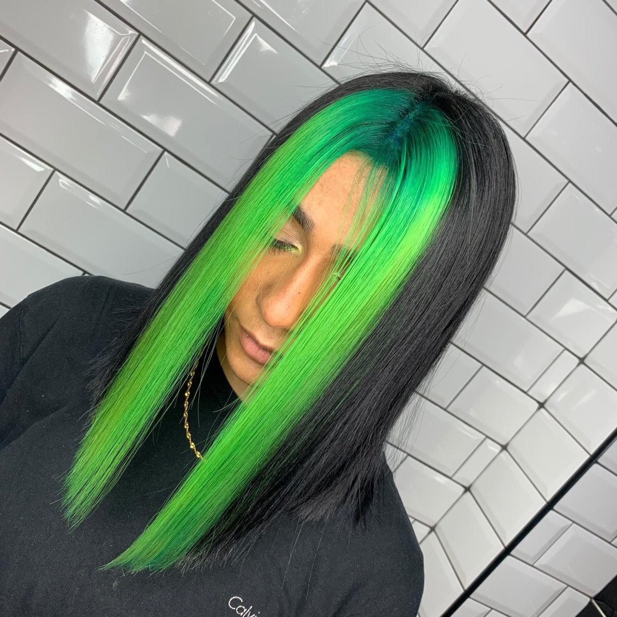 Зеленые пряди волос