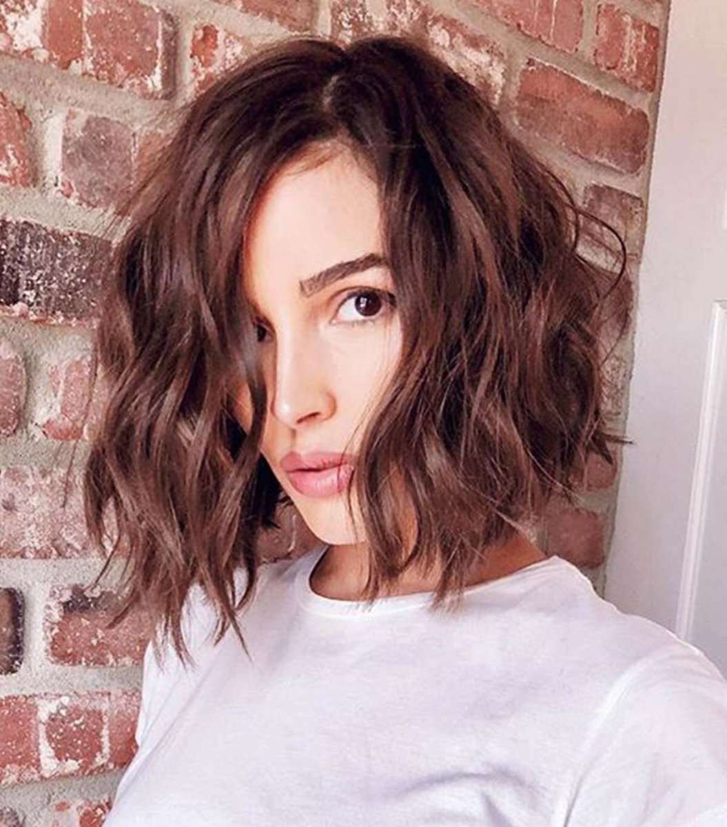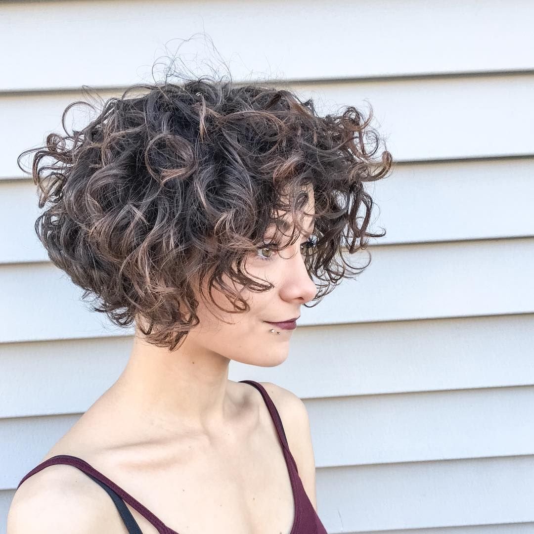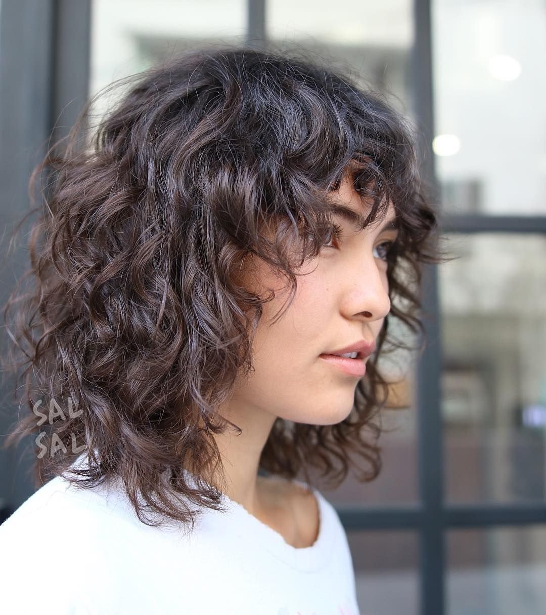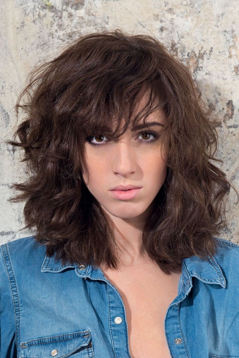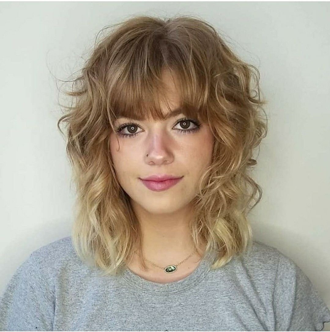 Градуированный Боб на средние вьющиеся волосы с челкой