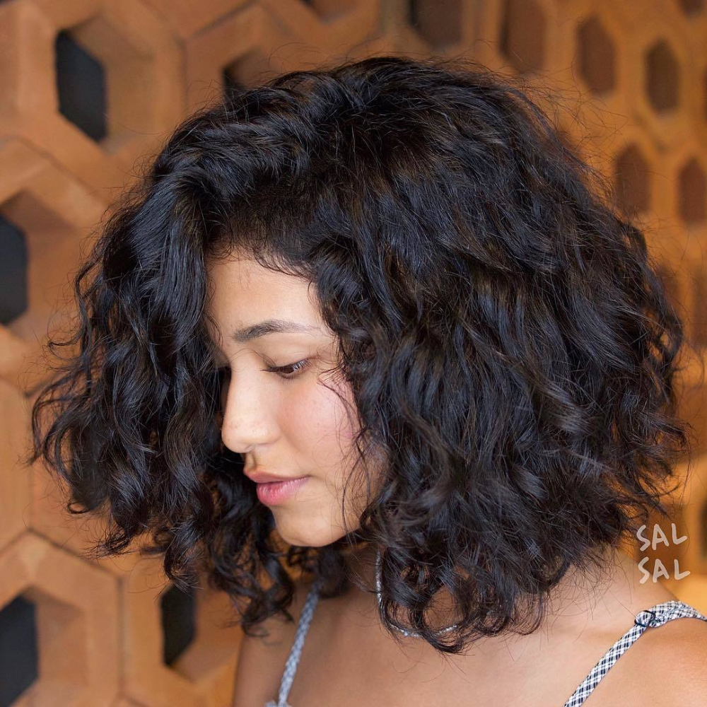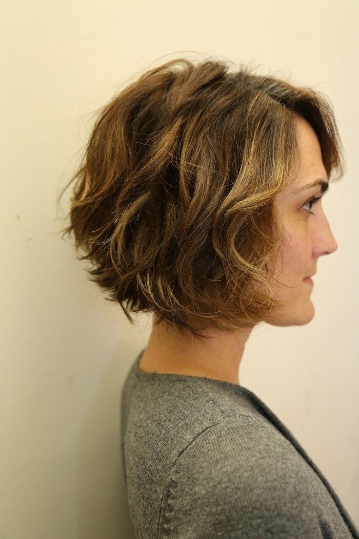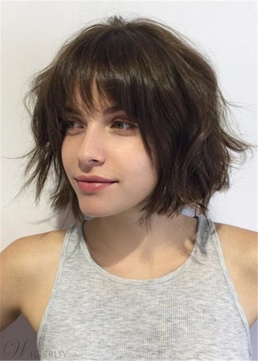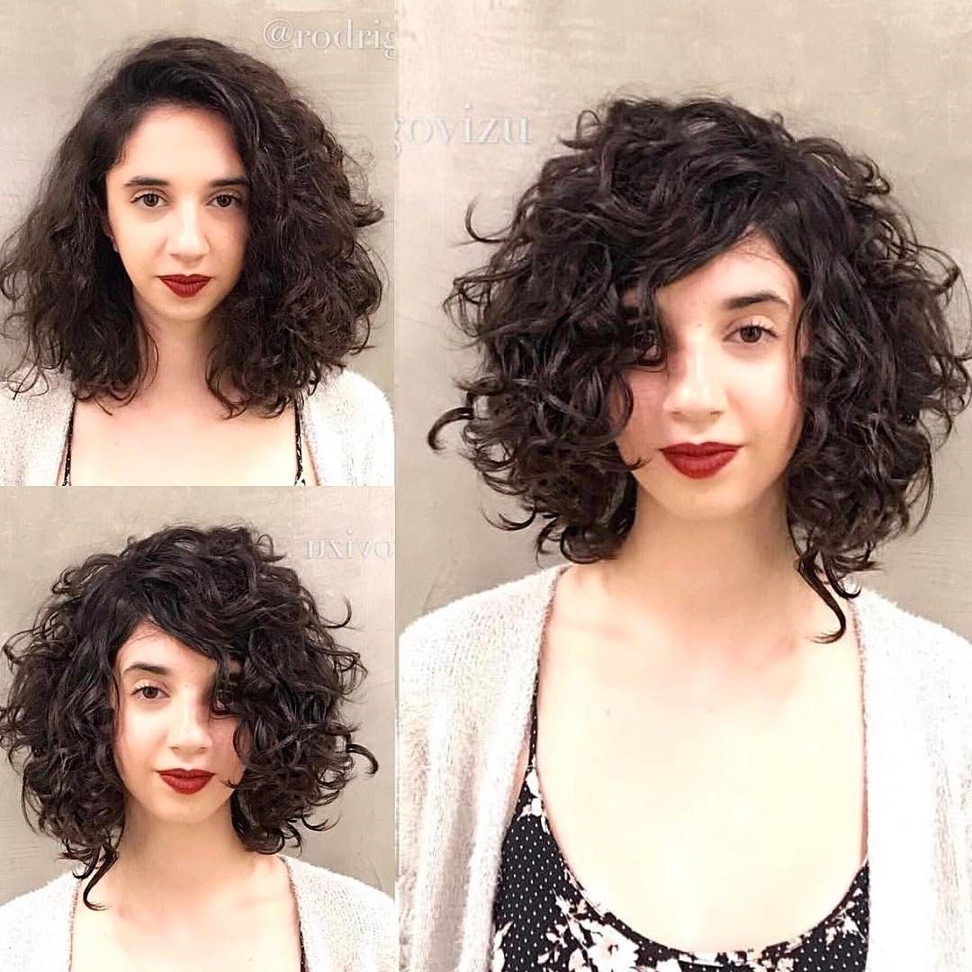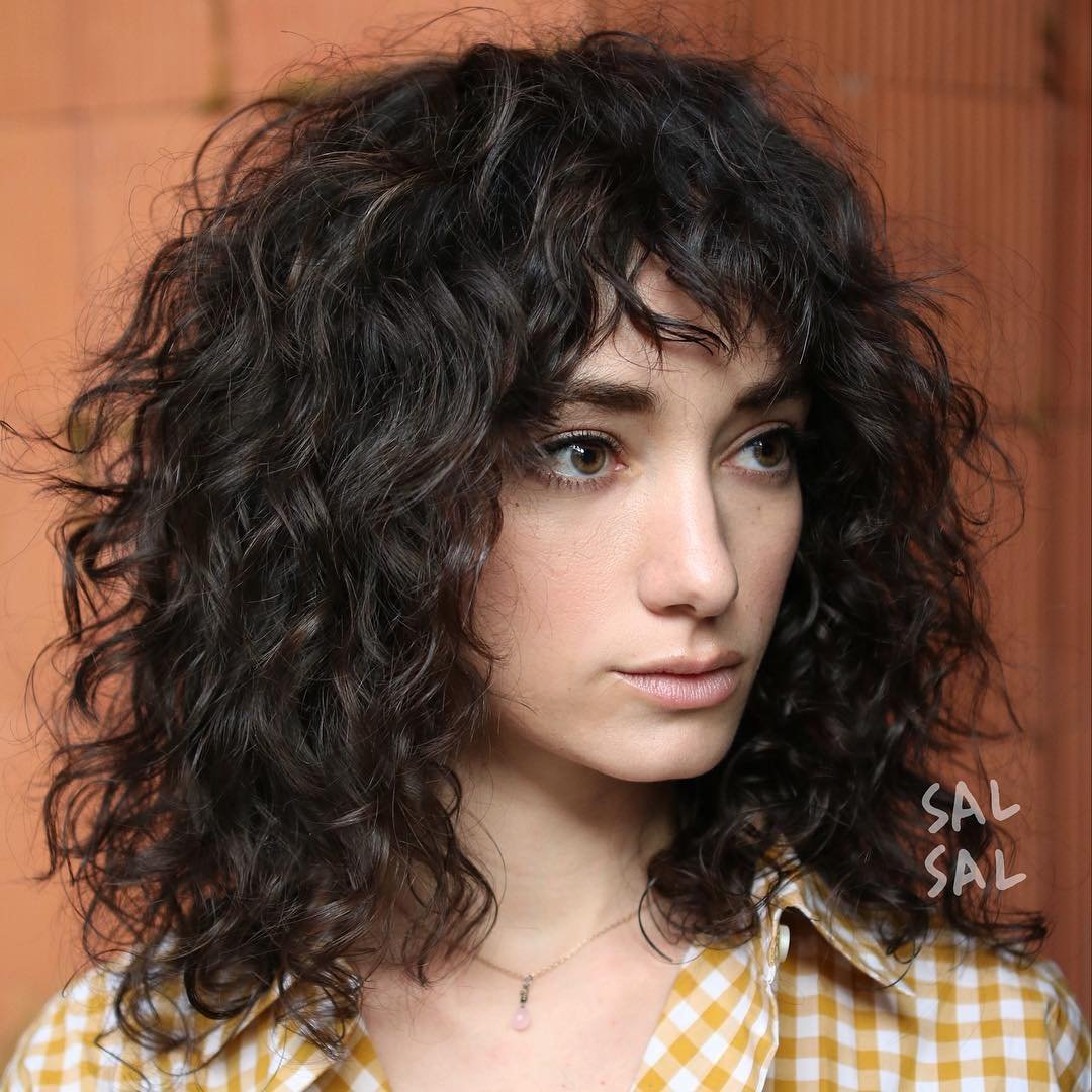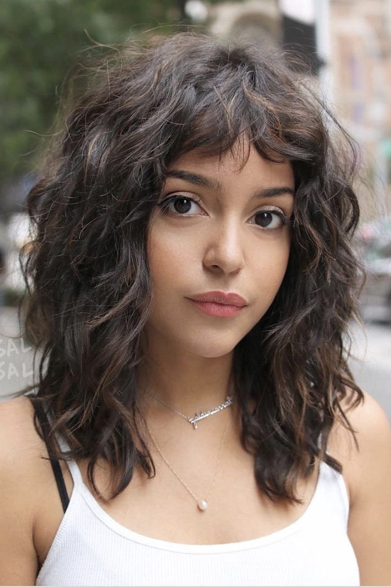 Градуированный Боб на средние вьющиеся волосы с челкой