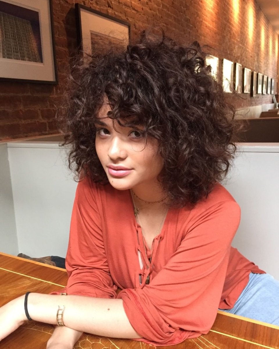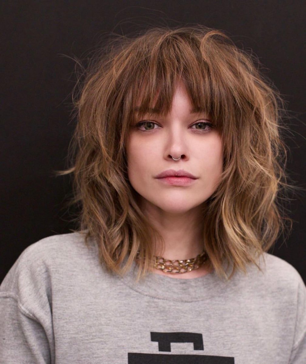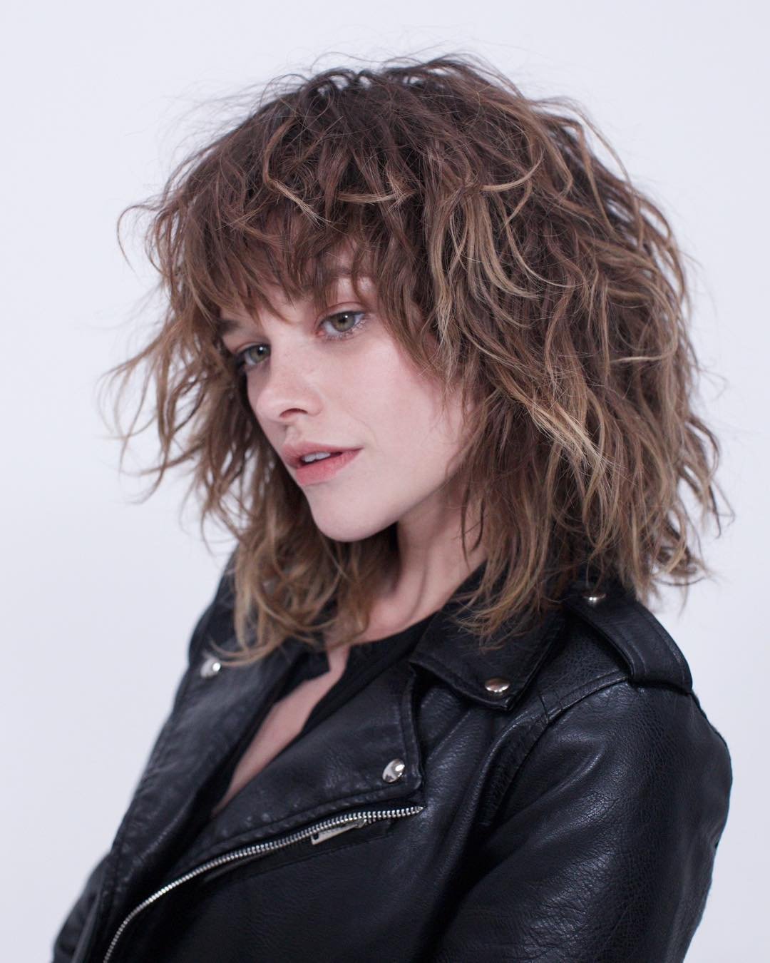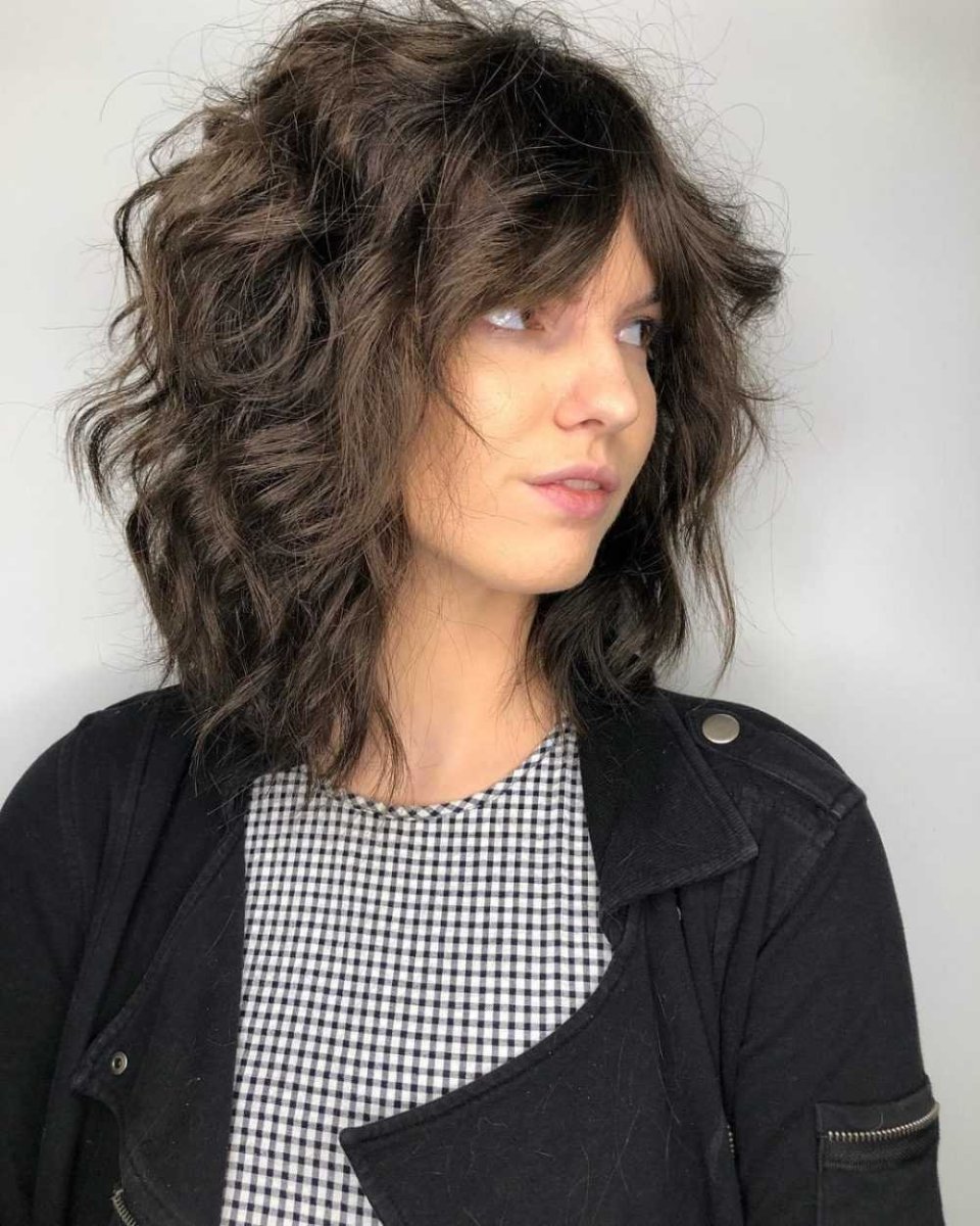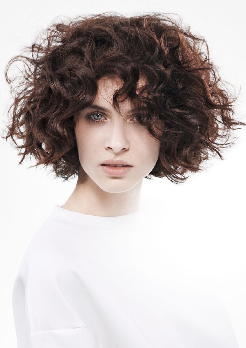 Градуированный Боб на средние вьющиеся волосы с челкой